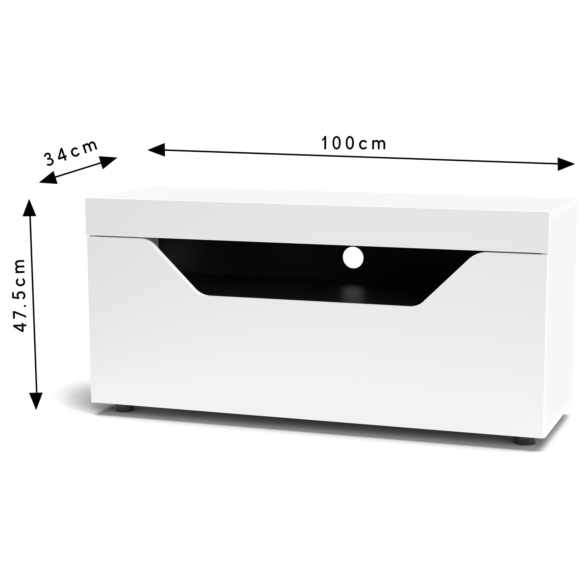 Nájdete tu plno úložného priestoru na vystavenie vašich dekorácií či odloženie vášho TV príslušenstva. K tomu využijete hornú dosku so šírkou 100 cm a otvorenú priehradku, ktorá je delená prostrednou policou. Pokiaľ potrebujete čokoľvek schovať mimo dohľad, na tieto účely máte k dispozícii spodnú zásuvku. Bezrúčkové vyhotovenie zvýrazňuje celkový minimalistický vzhľad TV komody. Predná časť je vyrobená z kvalitného MDF materiálu, korpus zase z laminovaného dreveného materiálu. Povrch komody sa vám tak bude ľahko udržiavať.
