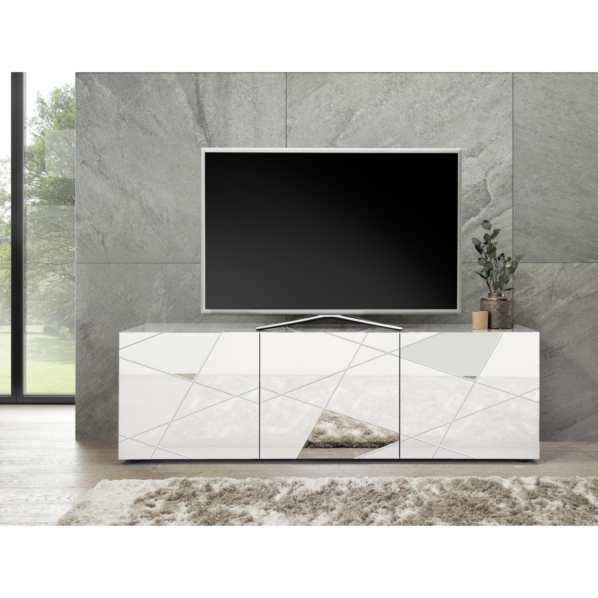 TV komoda VITTORIA 2 v elegantnom poňatí disponuje dekorovanou prednou časťou s lesklým povrchom a zrkadlovou aplikáciou bude dokonalým doplnkom všetkých moderných interiérov.