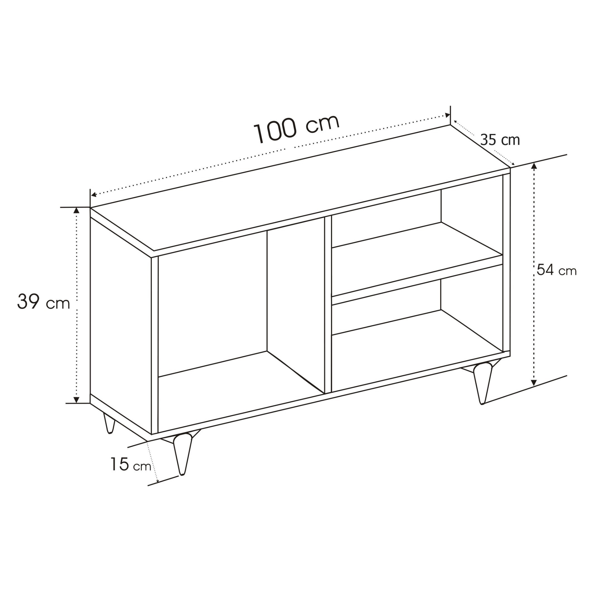 Horná doska so šírkou 100 cm poskytuje dostatok miesta na vašu televíziu. Spodný otvorený úložný priestor je zas ideálnym miestom nielen na vaše TV príslušenstvo, ale aj na dekorácie, ktoré chcete mať na očiach.
