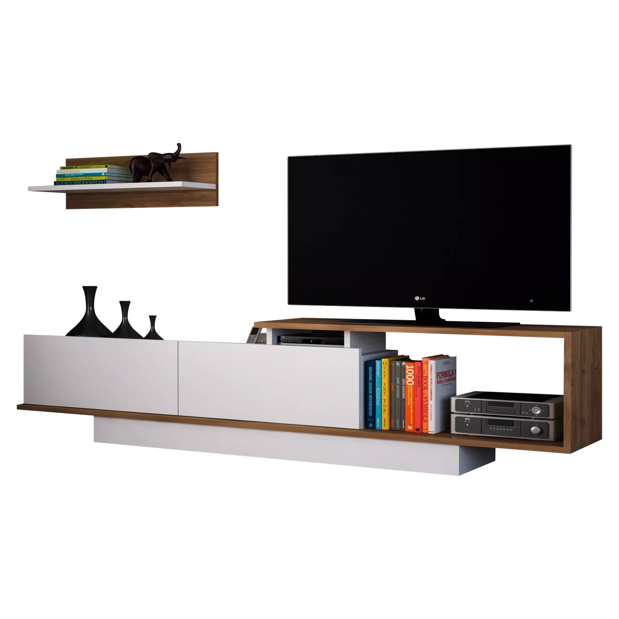 Obývacia zostava ASOS kombinuje moderný dizajn s jednoduchosťou. Komoda je na vyvýšenom podstavci, ktorý má bielu farbu a skvele sa dopĺňa s dvoma výklopnými dvierkami rovnakej farby. Nápaditý detail predstavuje časť komody v dekore orecha, kde nájdete aj voľný priestor na knihy alebo televízne príslušenstvo. Malá polička podtrhuje jednoduchosť celej zostavy, spája dohromady obe farby a ponúka ďalší voľný priestor na výzdobu, obrázky, vázy alebo knihy.