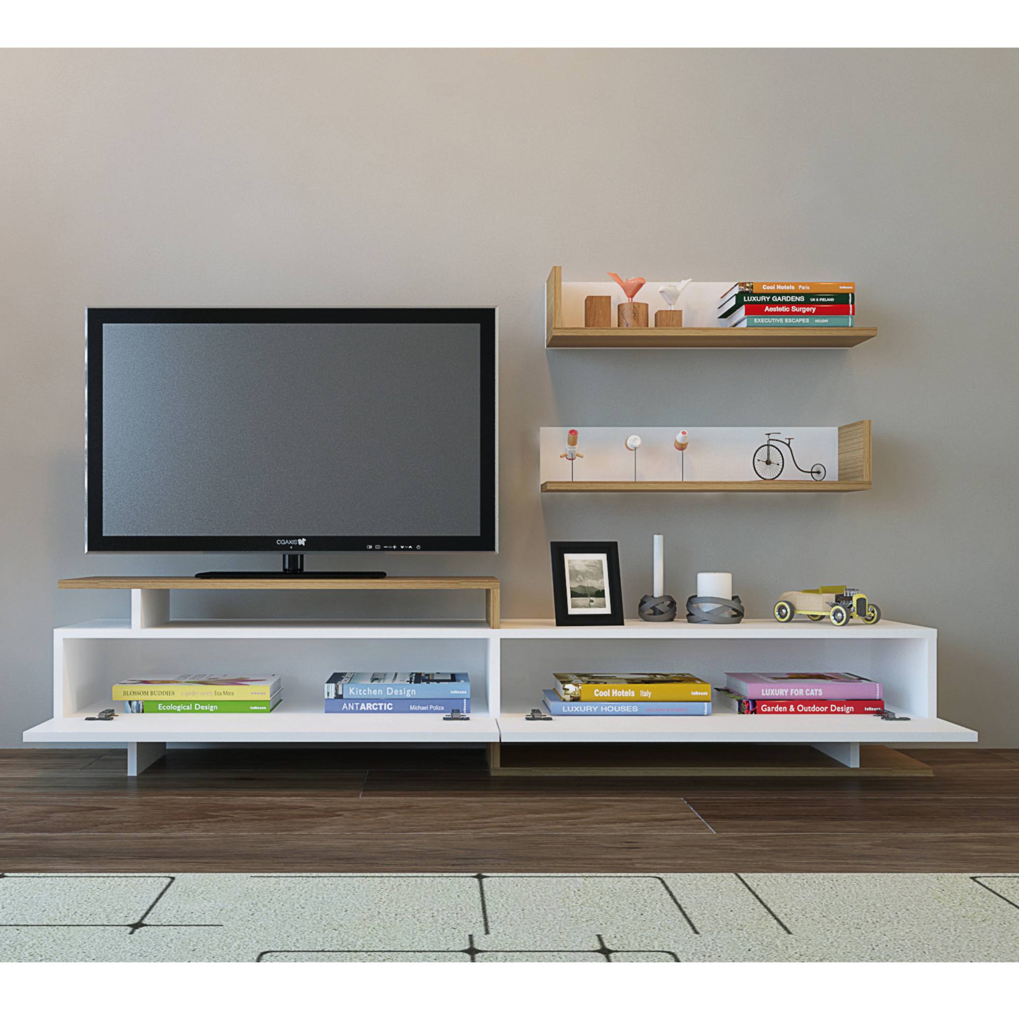 - Skladá sa z: TV komoda, nástenné police