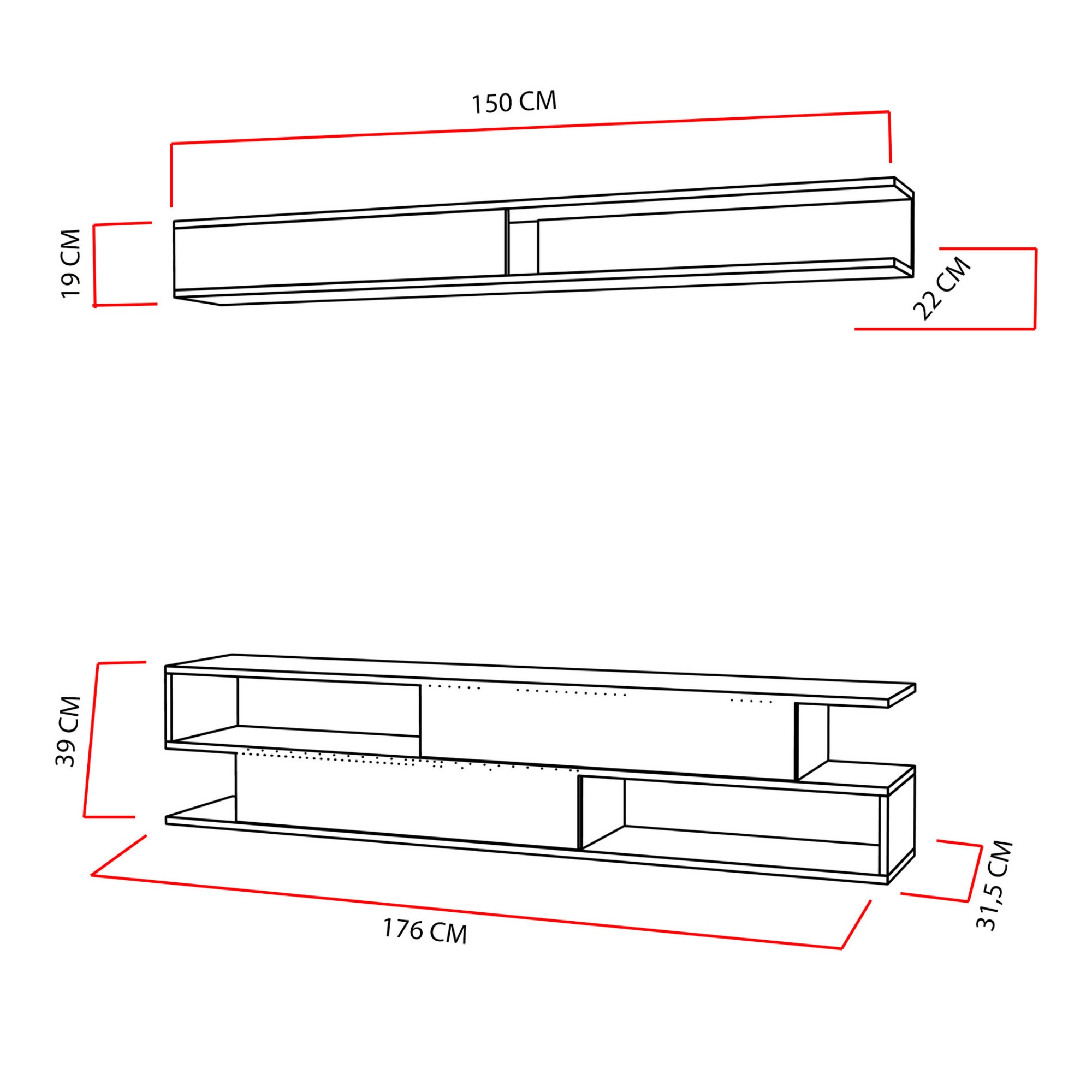 Zostava sa skladá z TV komody a nástennej police. TV komoda disponuje dostatkom úložného priestoru, a tak poskytne dostatok miesta nielen na odloženie TV príslušenstva. Polica zas umožní vystaviť dekorácie, fotografie či obľúbené knihy.