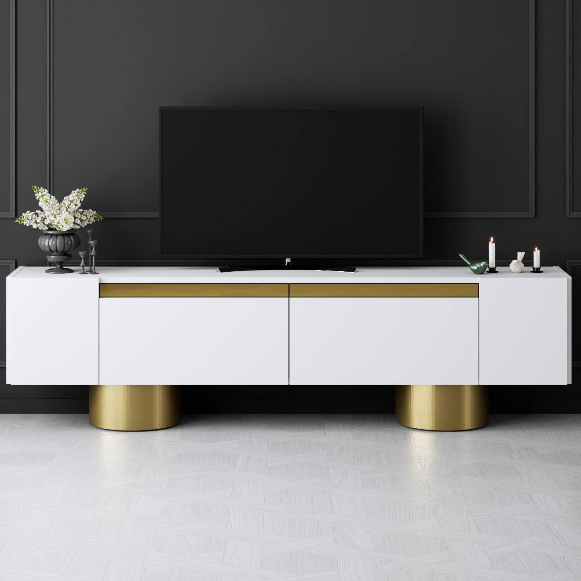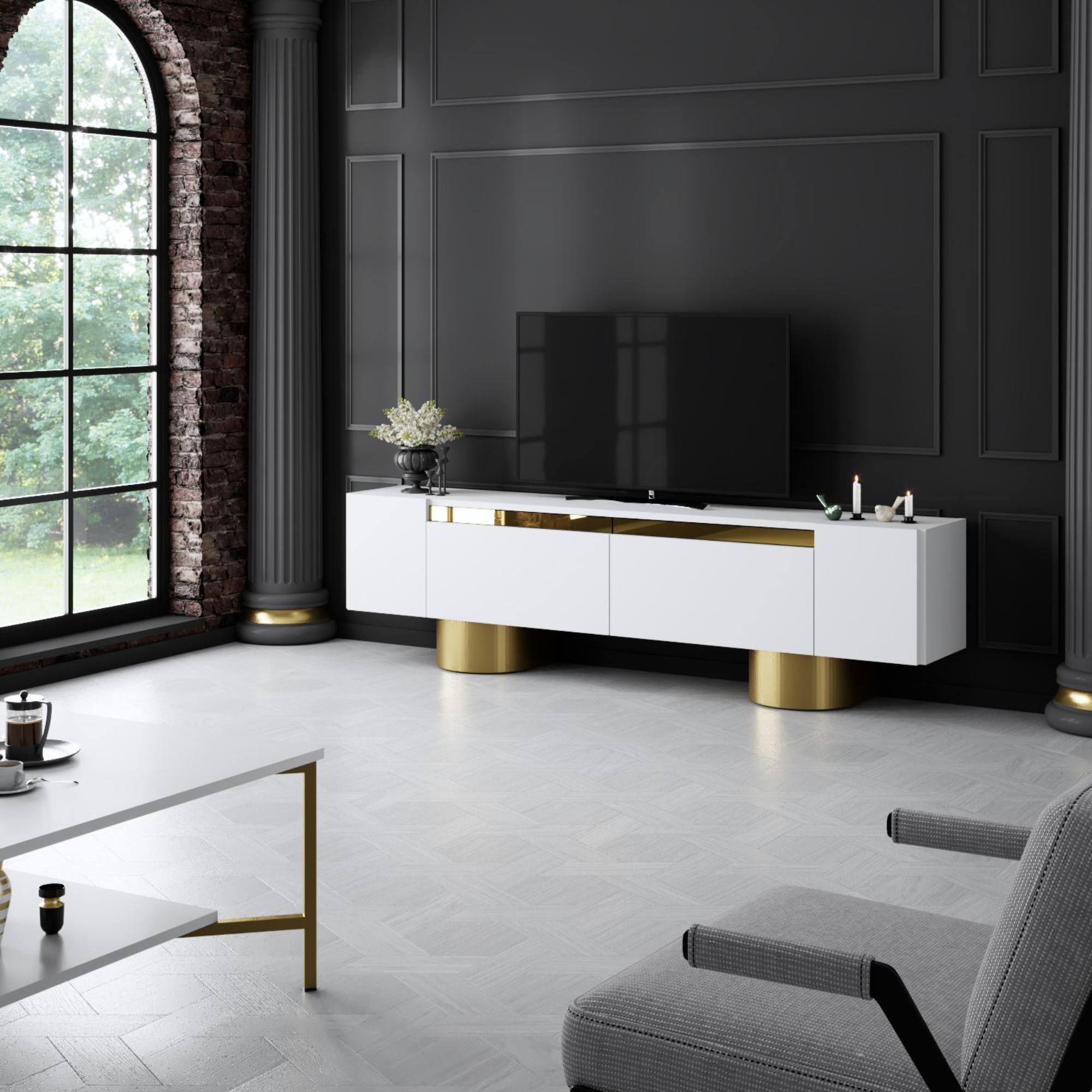 TV stolík BOHEM - biela/zlatá