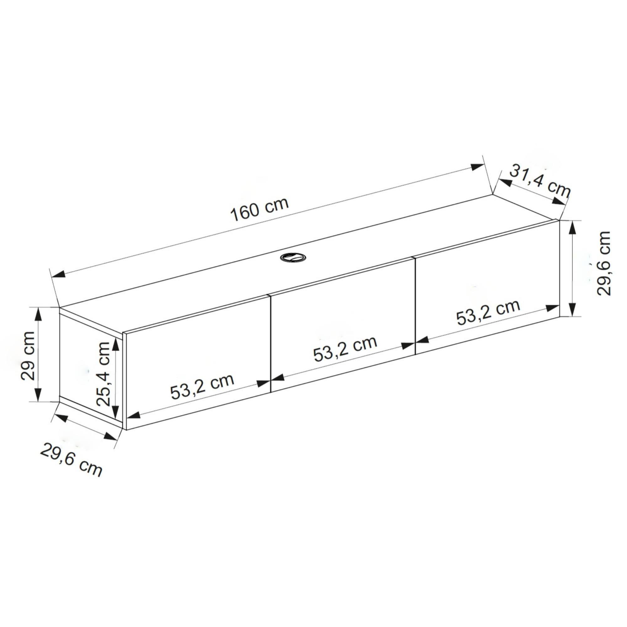 Závesný TV stolík DENBY, ktorý zaujme vďaka svojmu štýlovému bezrúčkovému prevedeniu, je stelesnením minimalistického štýlu.