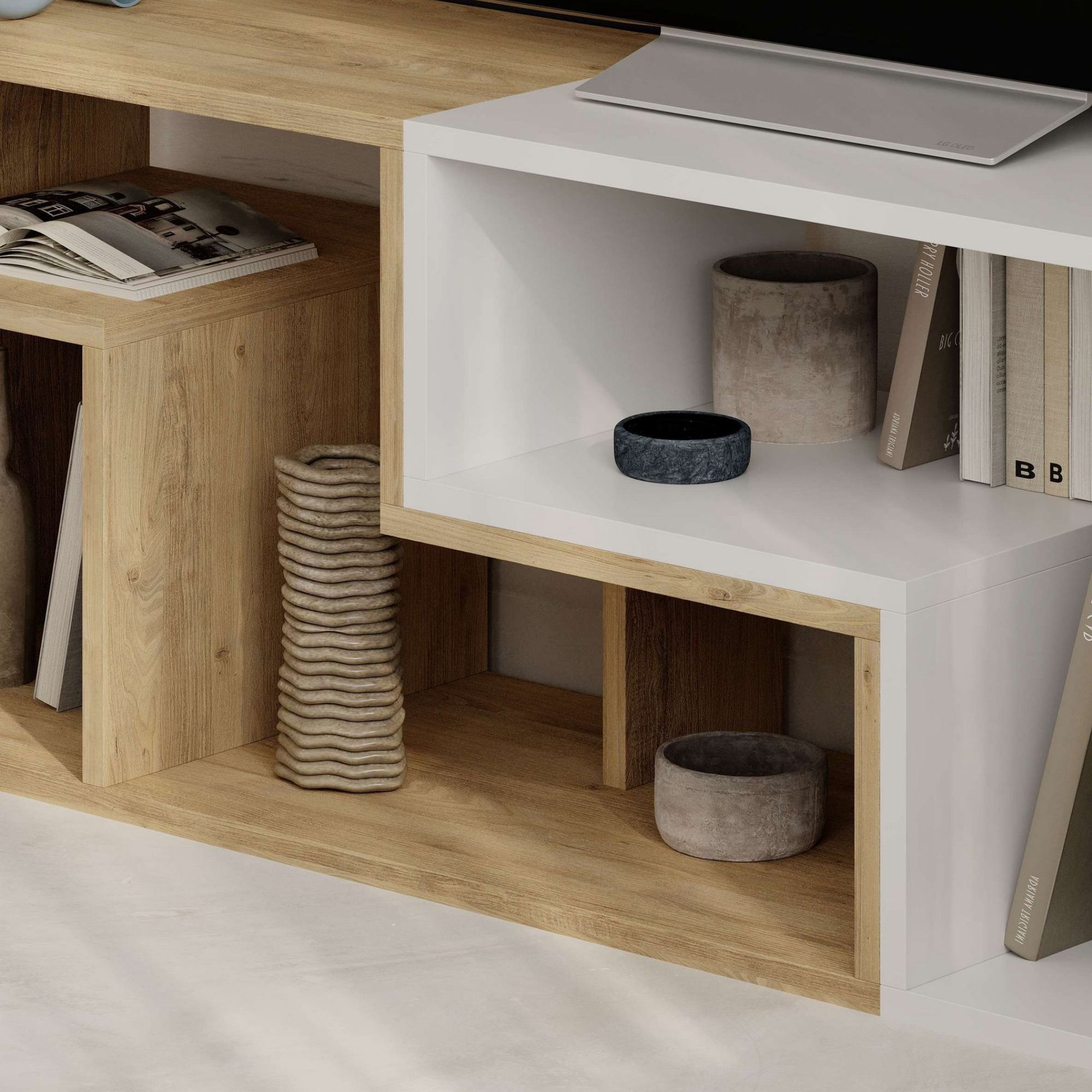TV stolík GLIS, ktorý je vyhotovený v modernom štýle, je možné zmontovať 2 rôznymi spôsobmi, a tak ho môžete prispôsobiť vášmu interiéru.