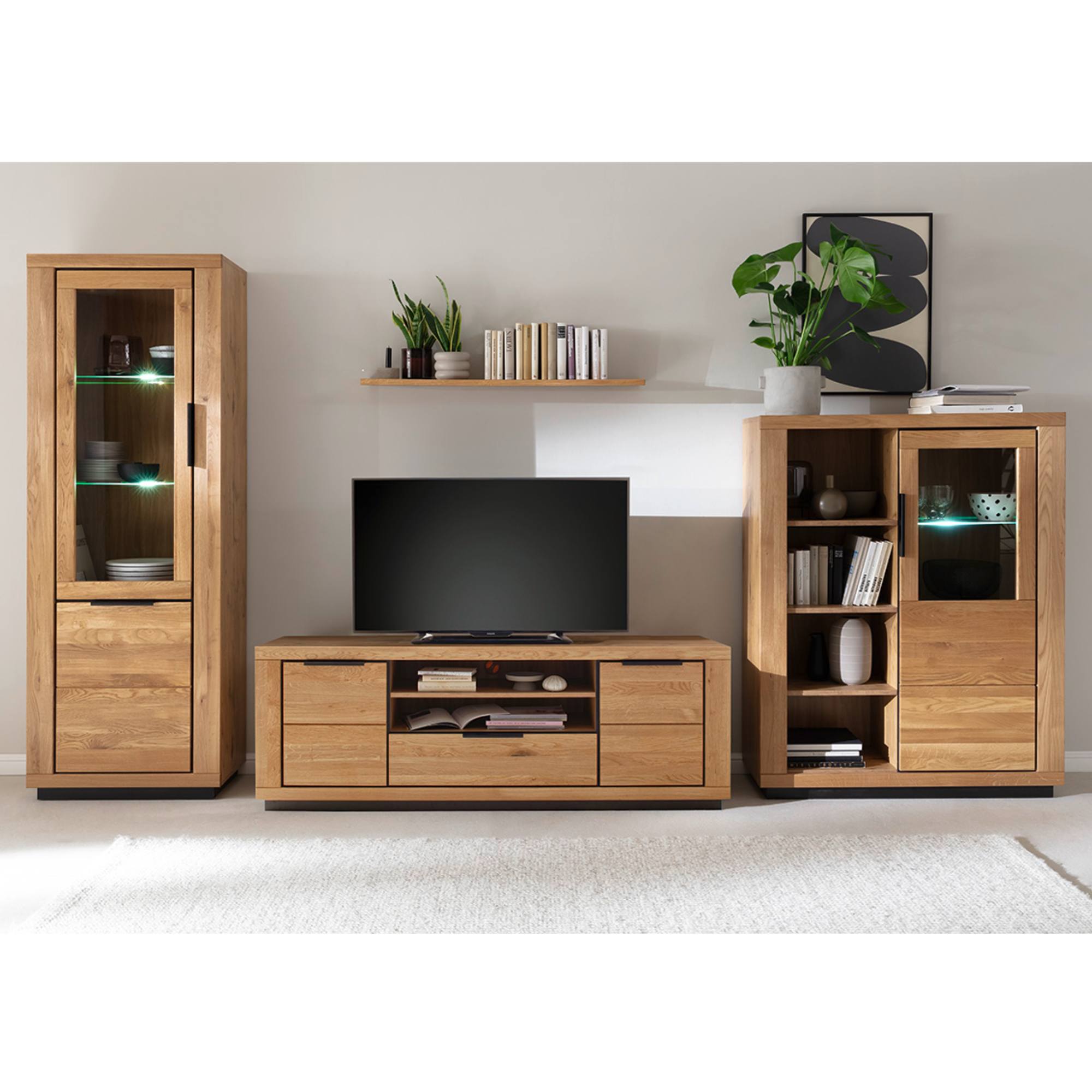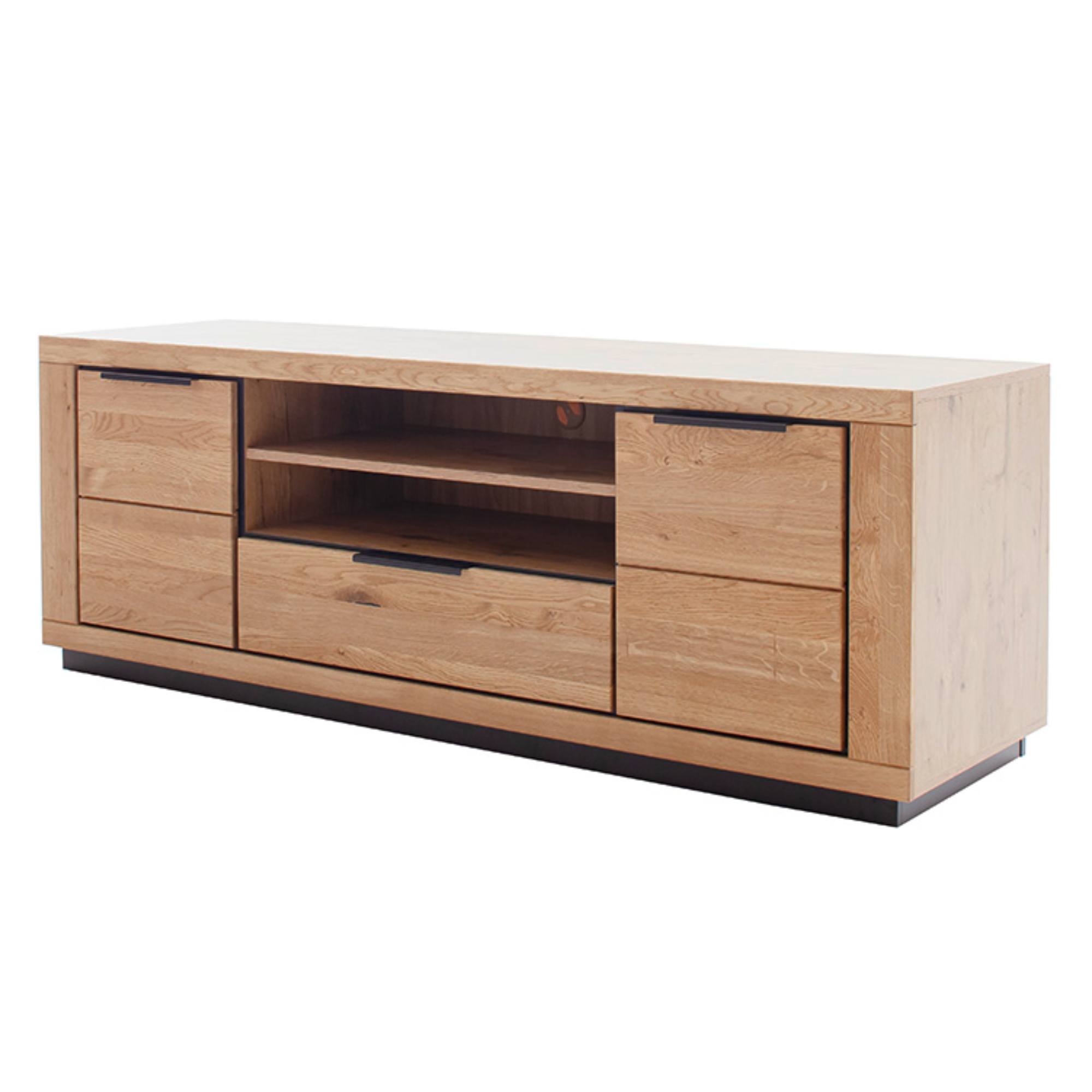Korpus TV stolíka je vyrobený z drevovláknitého materiálu MDF. Predná strana je z masívneho dubového dreva. Rúčky uľahčujúce manipuláciu s dvierkami a zásuvkou sú z kovu.