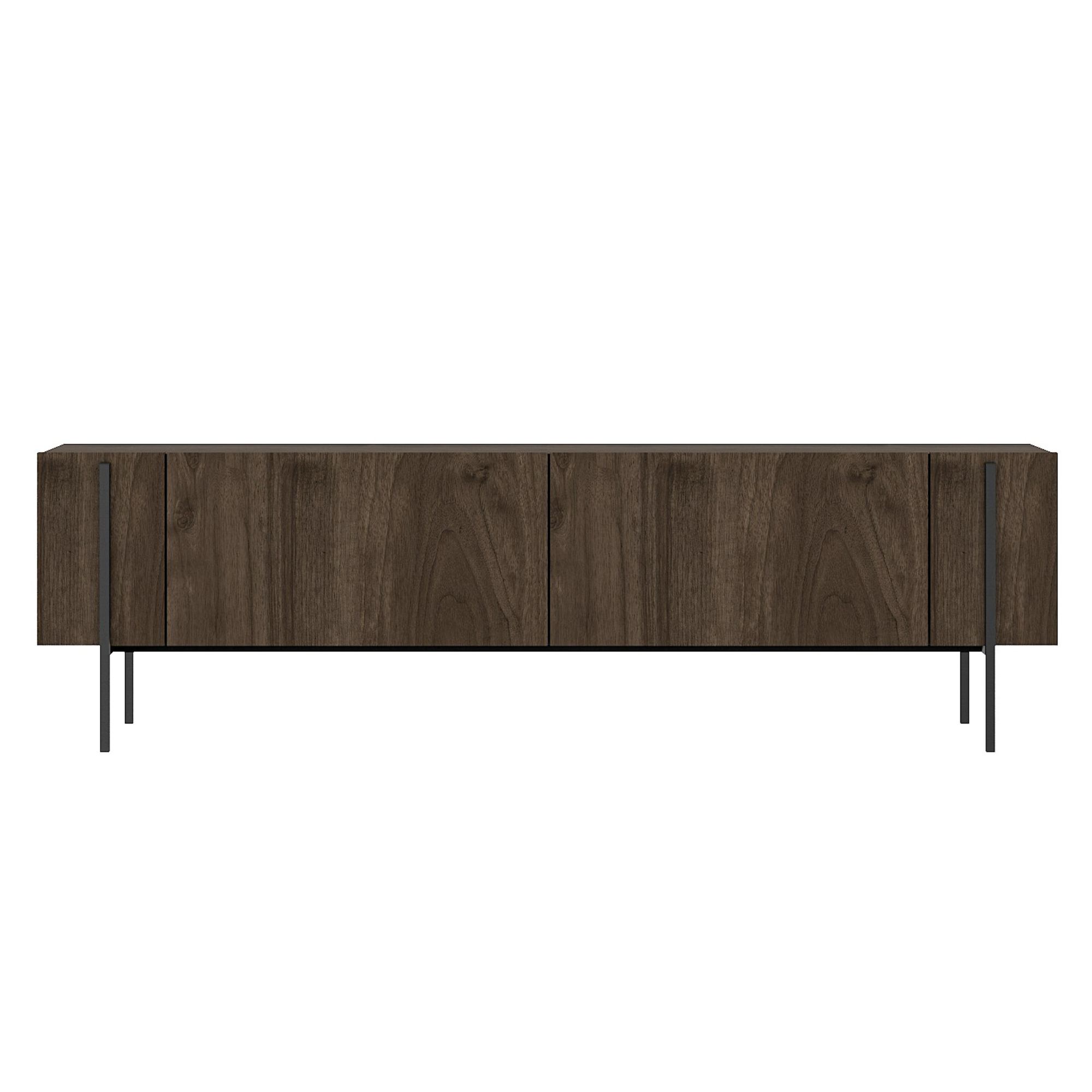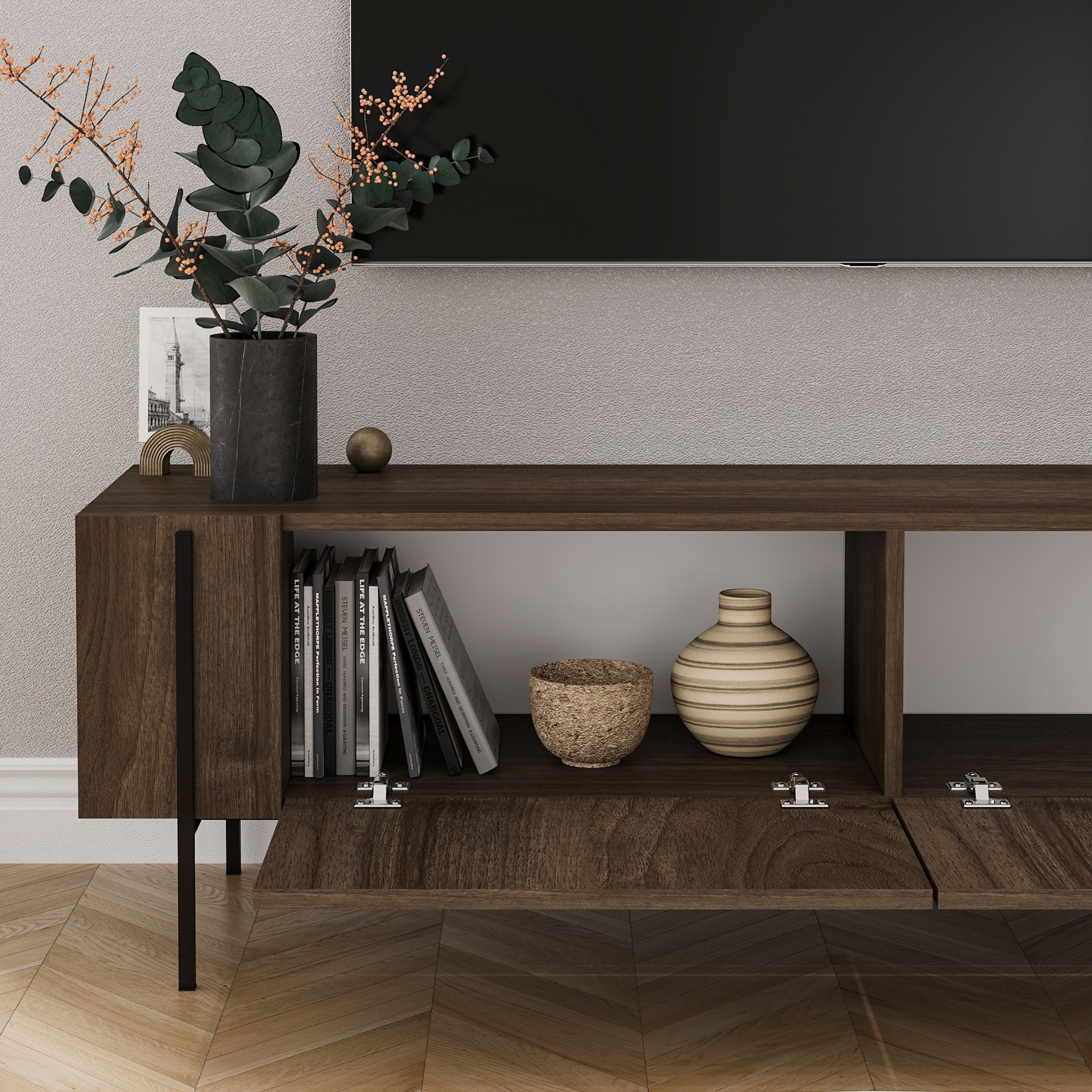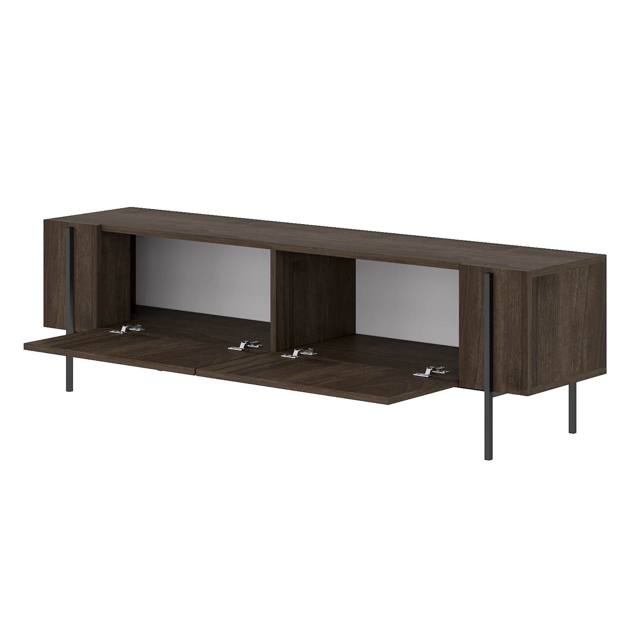 TV stolík ponúka dostatok úložného priestoru nielen na TV príslušenstvo. Tento priestor je ukrytý za výklopnými dvierkami v elegantnom bezrúčkovom vyhotovení.