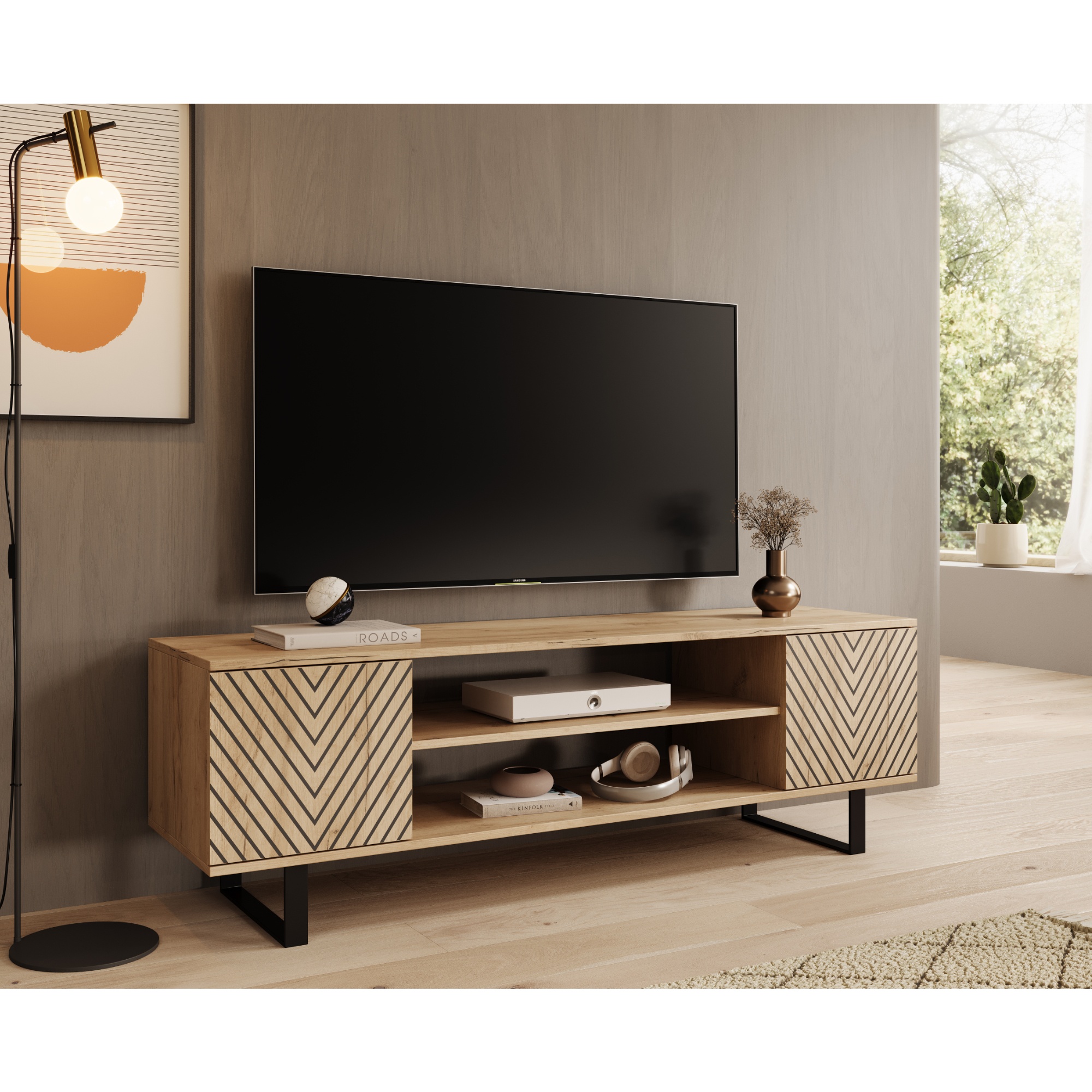 TV stolík LUNET ponúka dostatok uzatvárateľného aj otvoreného úložného priestoru. Jeho súčasťou je 1 vložená polica. Dvierka sú vybavené systémom tichého dovierania.