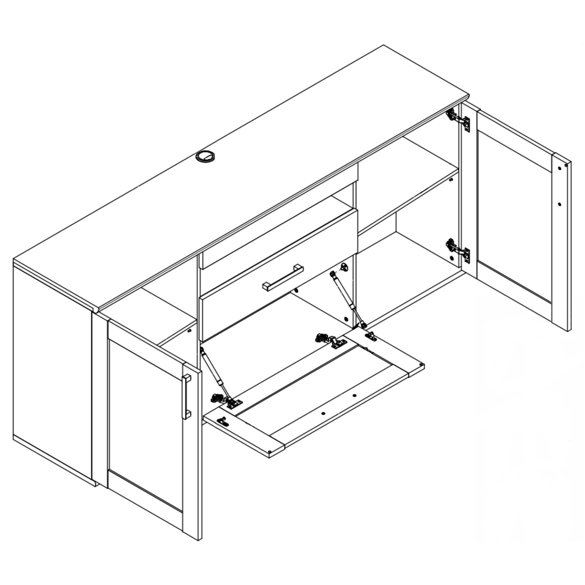 Komoda disponuje jednou zásuvkou, otvorenou priehradkou a troma dvierkami. Všetko potrebné tak budete mať hneď po ruke. Decentné rúčky uľahčujú celkovú manipuláciu. Horná odkladacia doska je vyrobená z MDF materiálu s ABS lištou, ktorá pridáva na odolnosti a dlhšej životnosti. Korpus z laminovaného dreveného materiálu sa ľahko udržuje.