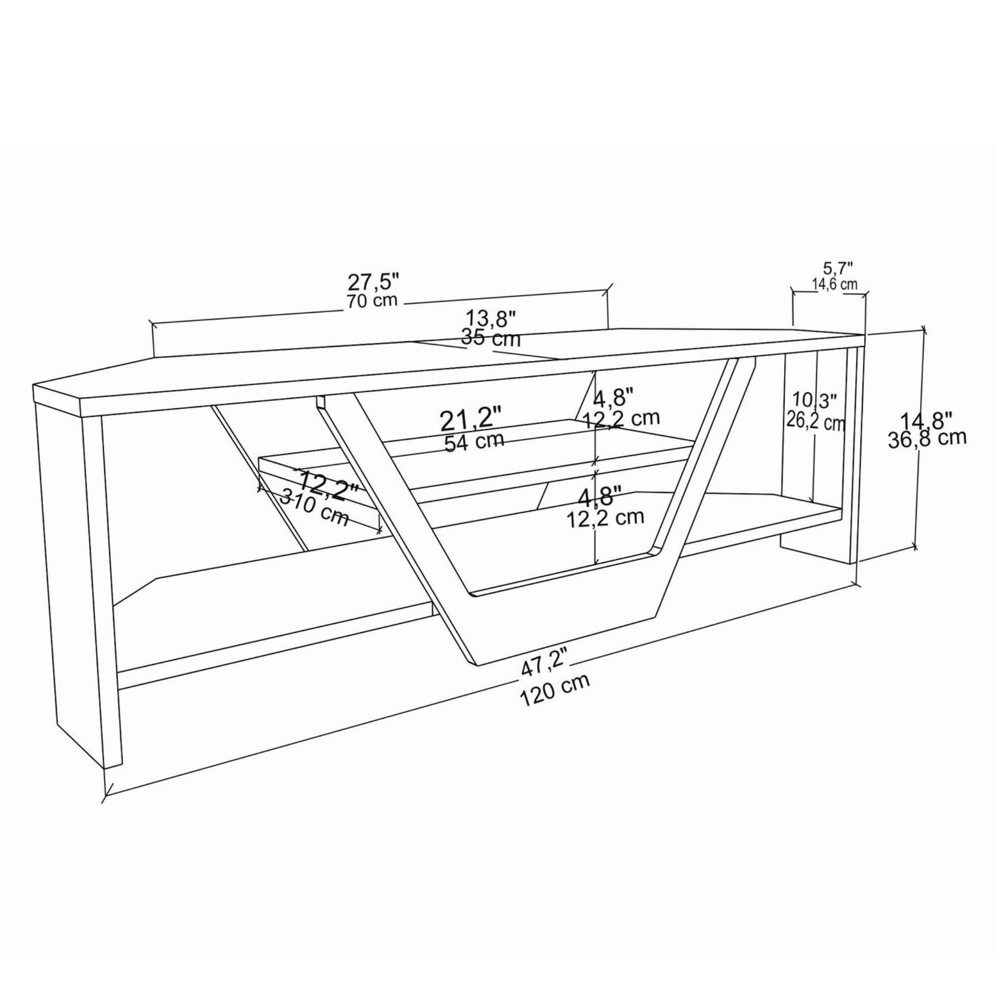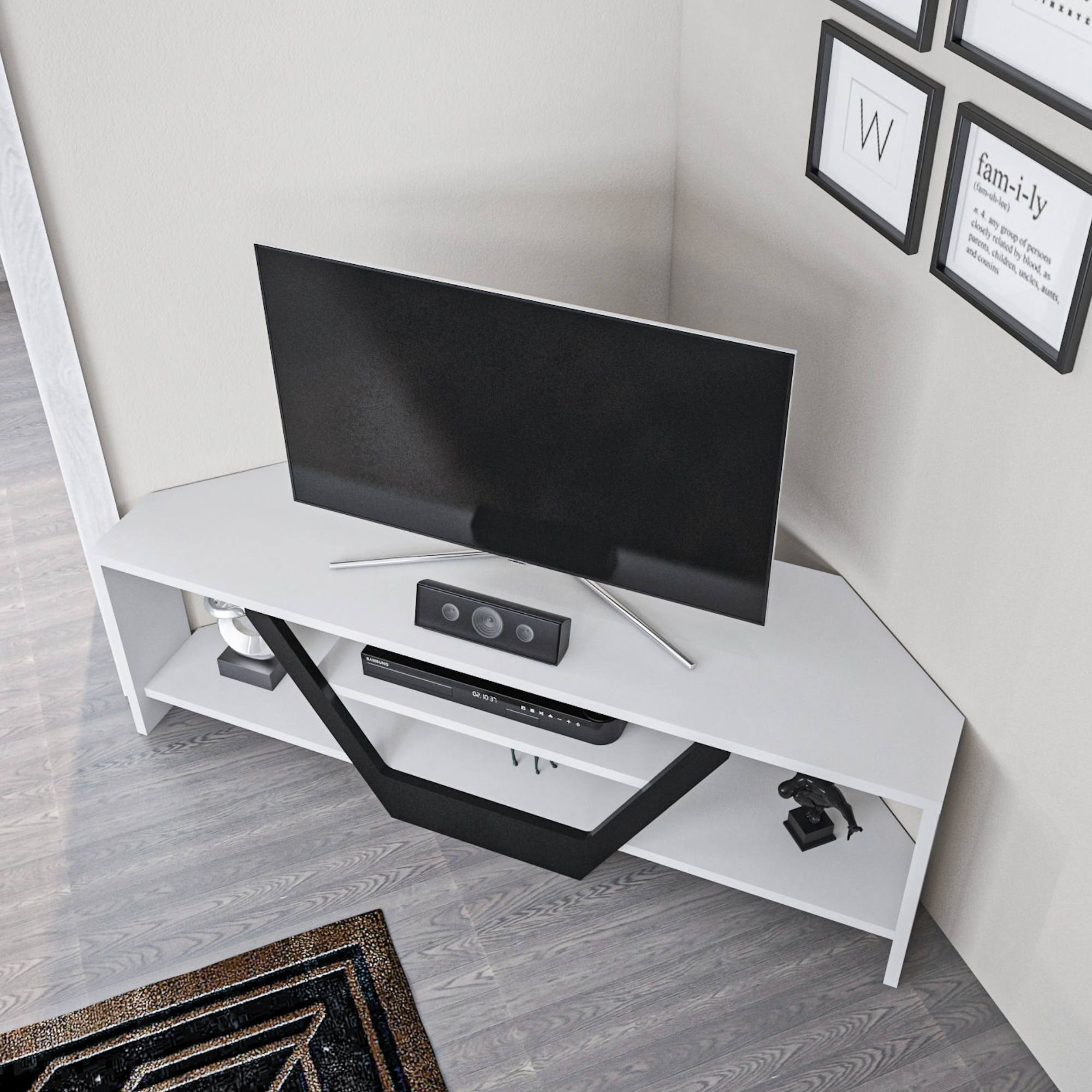 Stolík poskytuje dostatok miesta na uloženie všetkého potrebného. Je vybavený otvoreným úložným priestorom s 1 policou. Tá je ideálna na umiestnenie set-top boxu, DVD prehrávača či inej elektroniky. Zvyšok stolíka možno využiť na odloženie ovládačov, kníh či vystavenie dekorácií. Jeho rohové vyhotovenie je ideálne do menších miestností, kde ušetrí množstvo miesta.