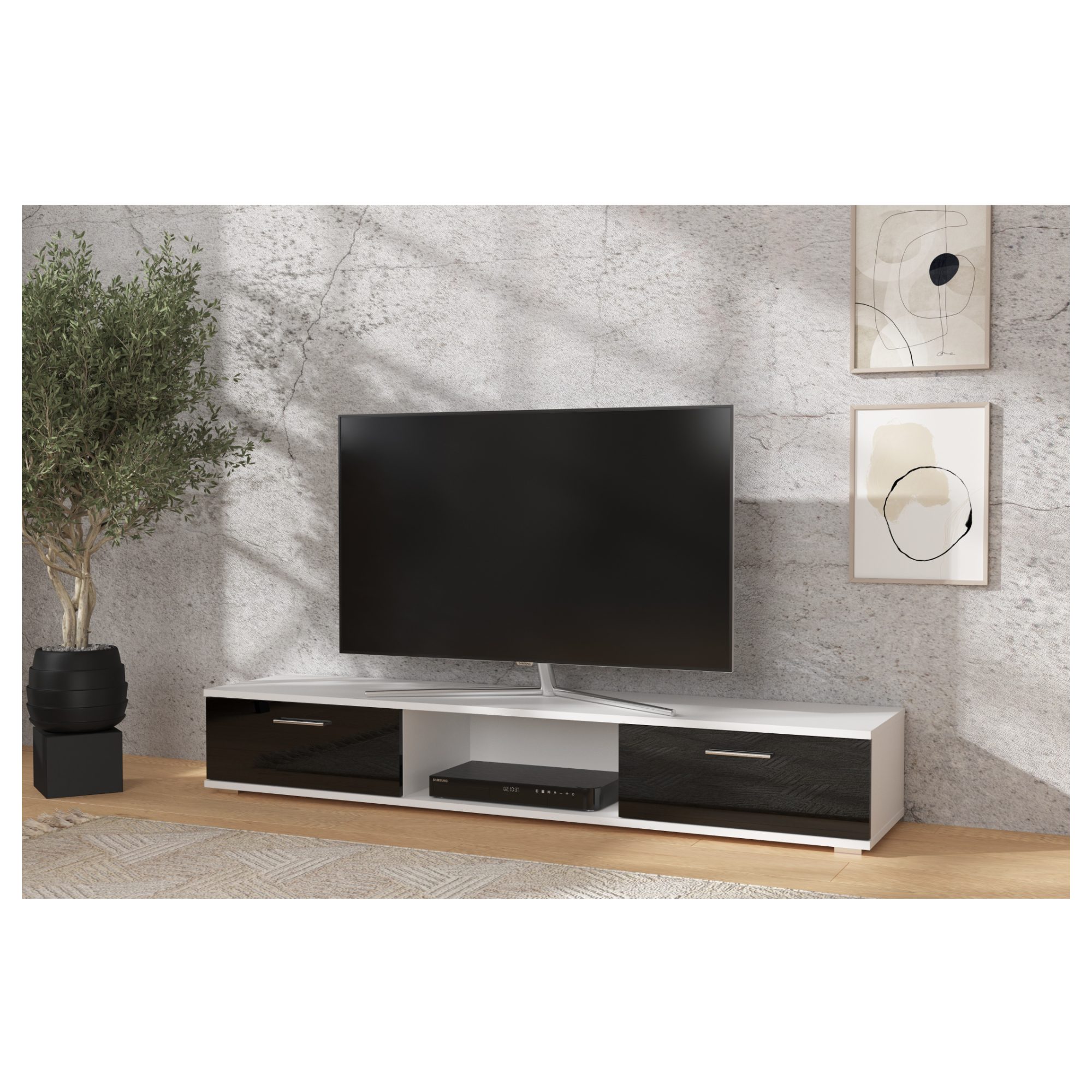 TV stolík ponúka dostatok úložného priestoru nielen pre TV príslušenstvo. Môžete do neho uložiť aj ostatné veci, ktoré potrebujete mať v obývačke po ruke. Aby sa s výklopnými dvierkami stolíka dobre manipulovalo, sú vybavené plastovými rúčkami.