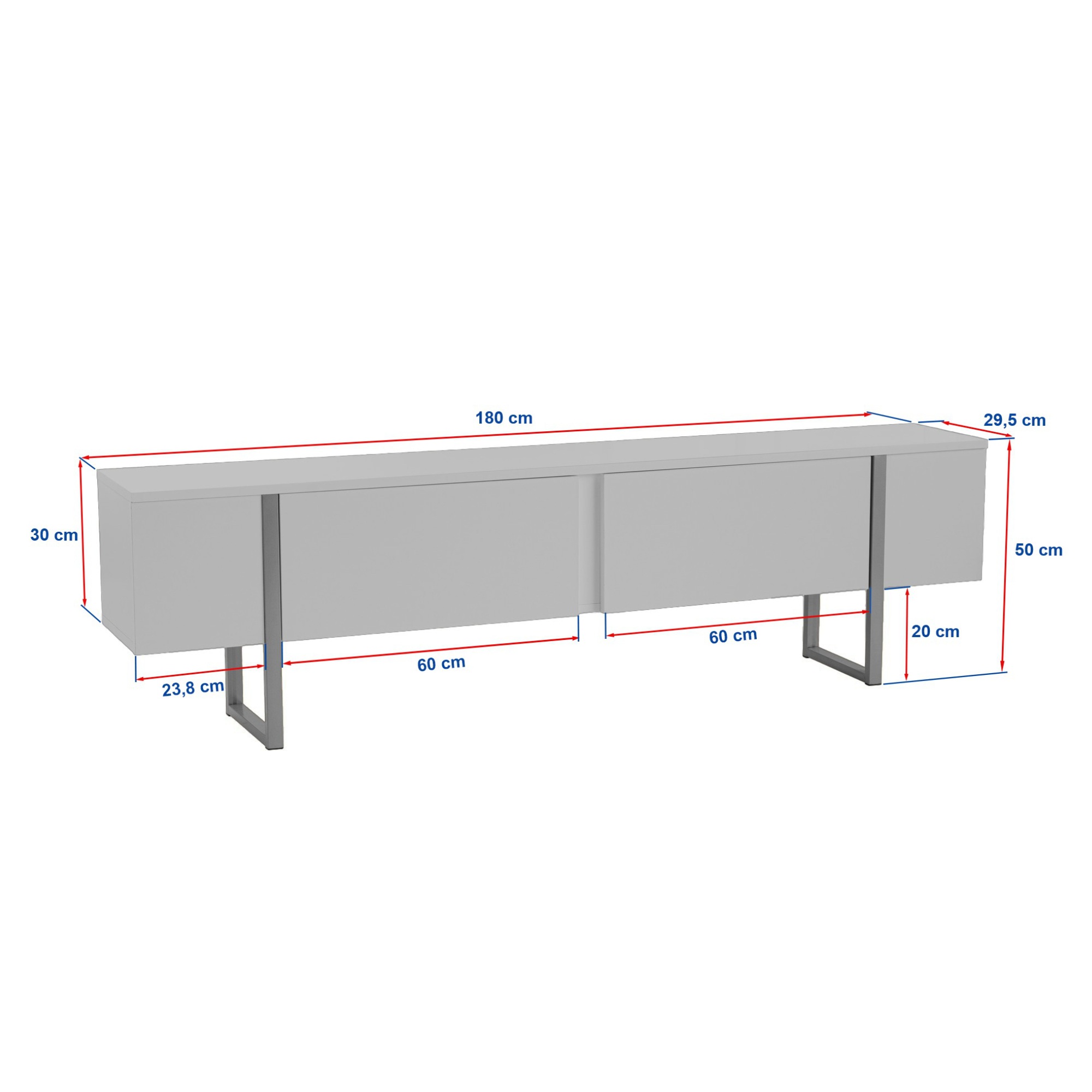 TV stolík má vysoké nohy, ktoré uľahčujú upratovanie pod ním. Na jeho výrobu bola využitá laminovaná drevotriesková doska. Tento materiál je nielen nenáročný na údržbu, ale v prípade správnej starostlivosti vás poteší aj dlhou životnosťou.