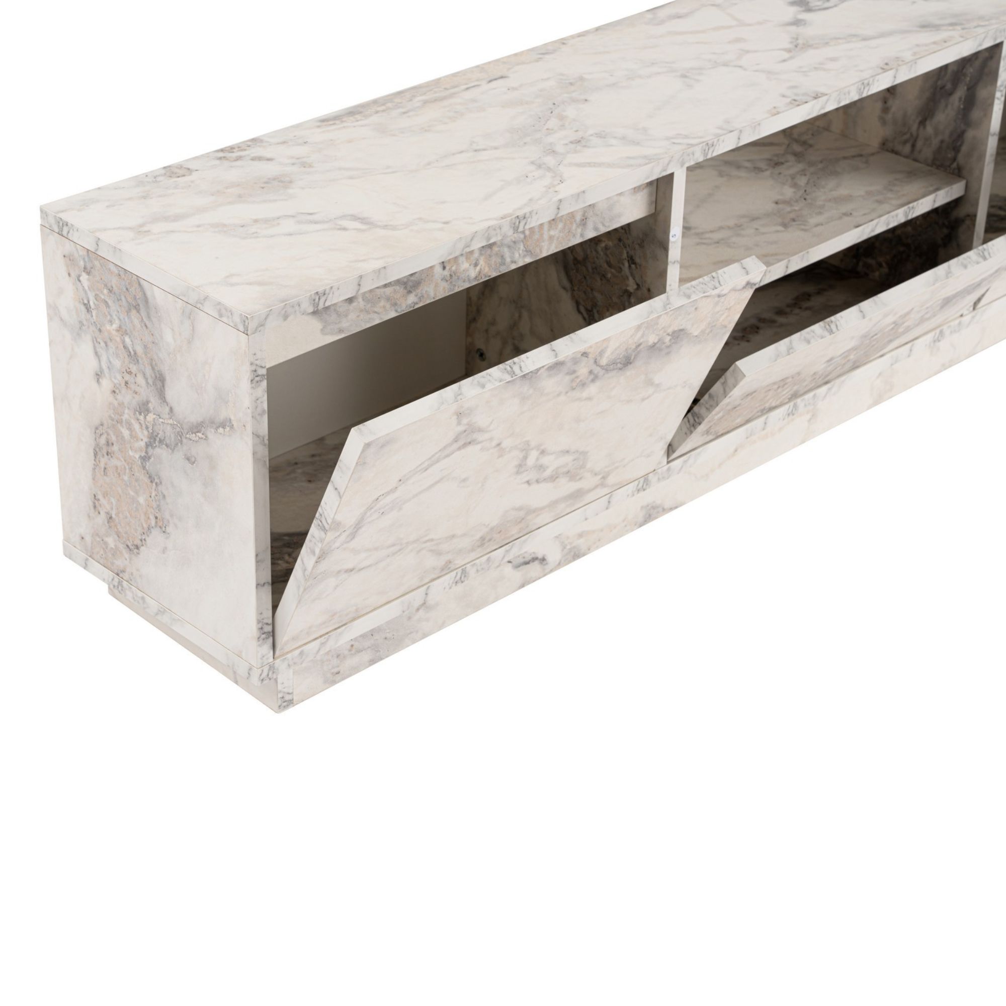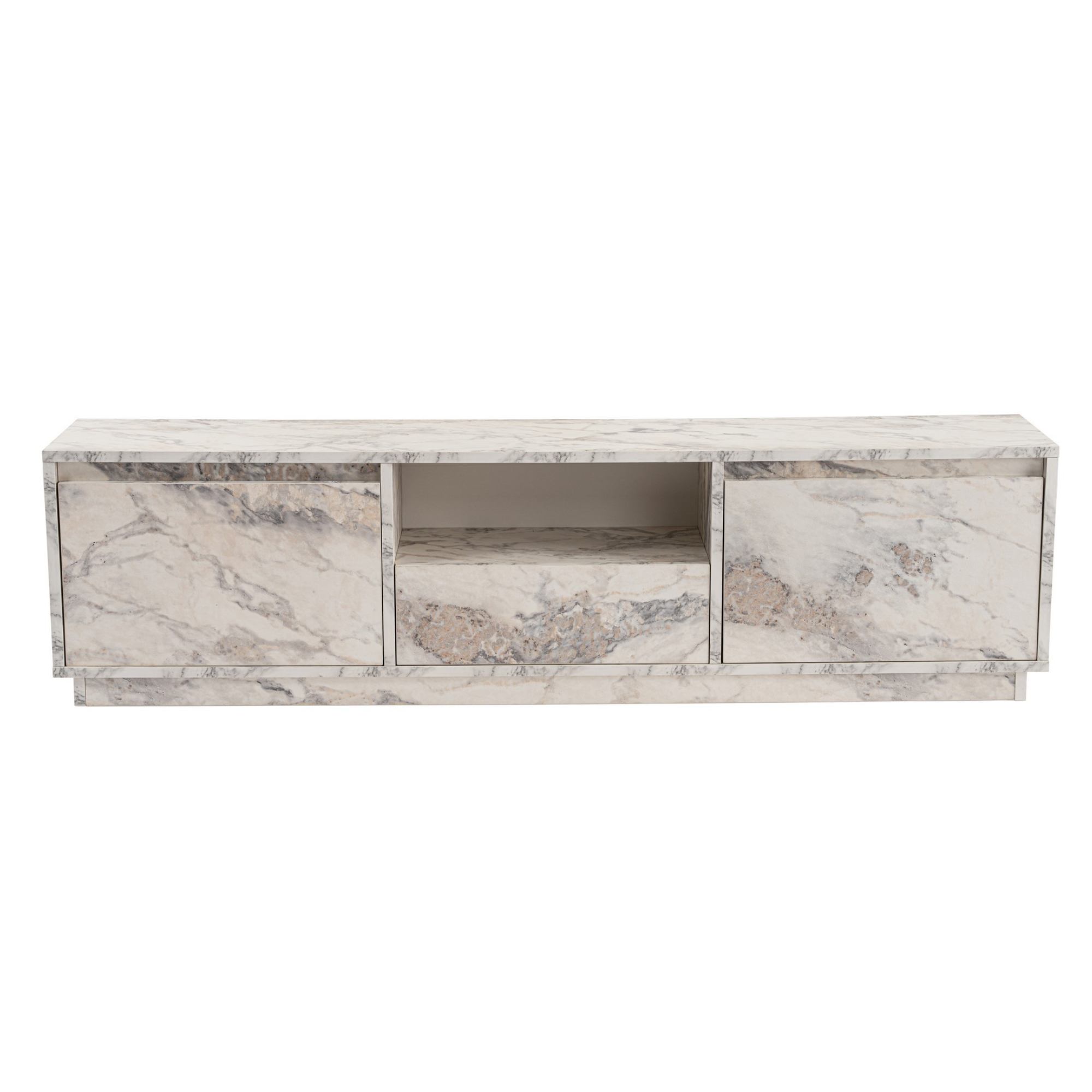 TV stolík VANGUARD, ktorý zdobí elegantný dekor mramoru, je skvelou voľbou pre každú modernú obývaciu izbu.