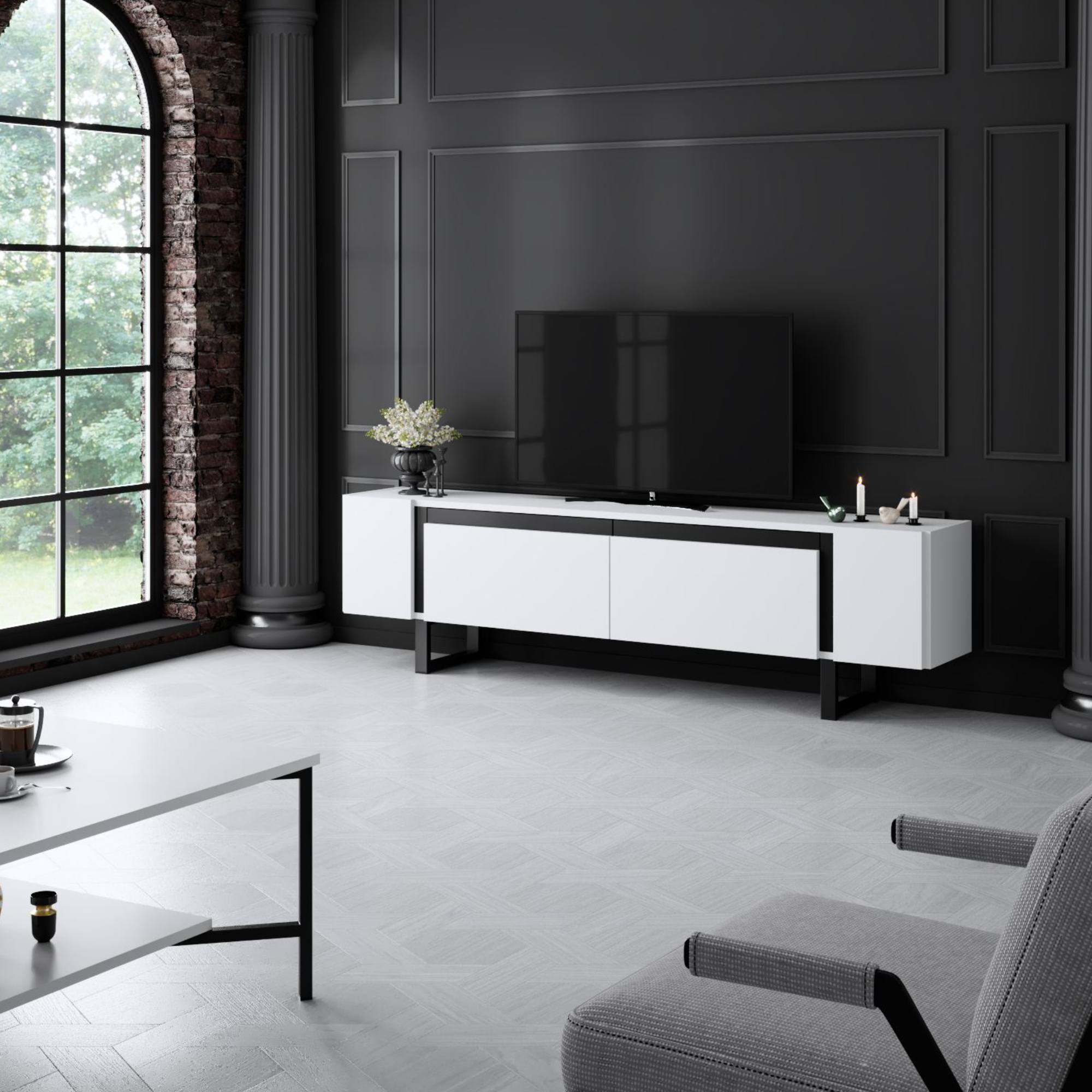 TV stolík YILDIZ - biela/čierna