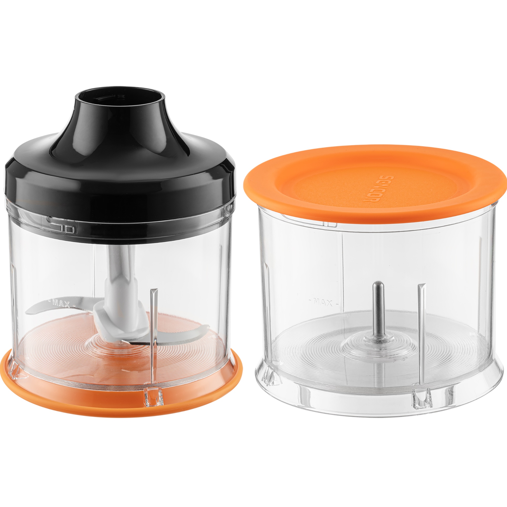 Vybrať si môžete z dvoch rýchlostí – štandardnej a TURBO, ktorá sa spoľahlivo postará o dokonalé rozmixovanie čohokoľvek čo vás len napadne. Ergonomicky tvarovaná rukoväť vám uľahčí manipuláciu. 700 ml nádoba s viečkom umožní uchovávať rozmixované omáčky a pokrmy. Súčasťou balenia je aj nádoba s objemom 500 ml so sekáčikom, ktorý si spoľahlivo poradí s orechmi alebo bylinkami. Rovnako praktická je tiež metla, s ktorou sa môžete pustiť do šľahania rôznych krémov.