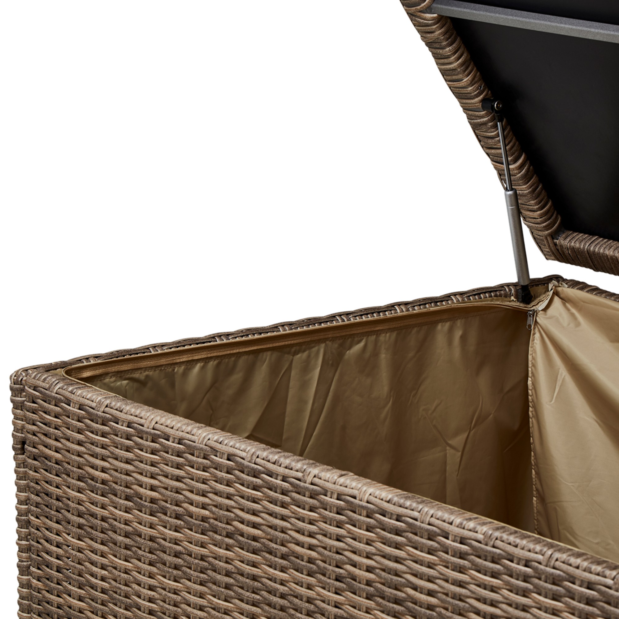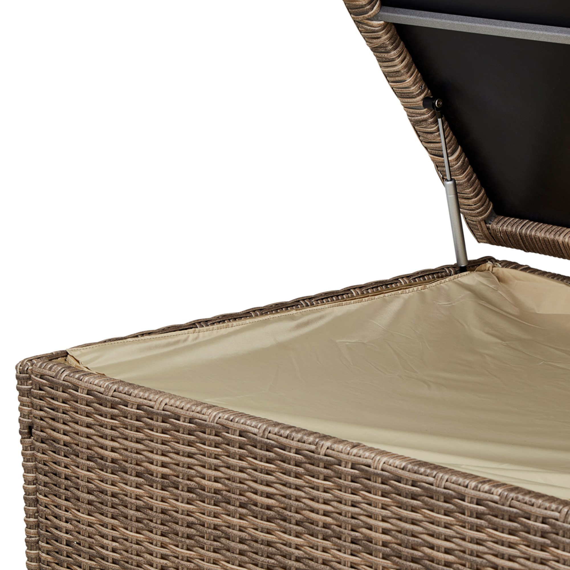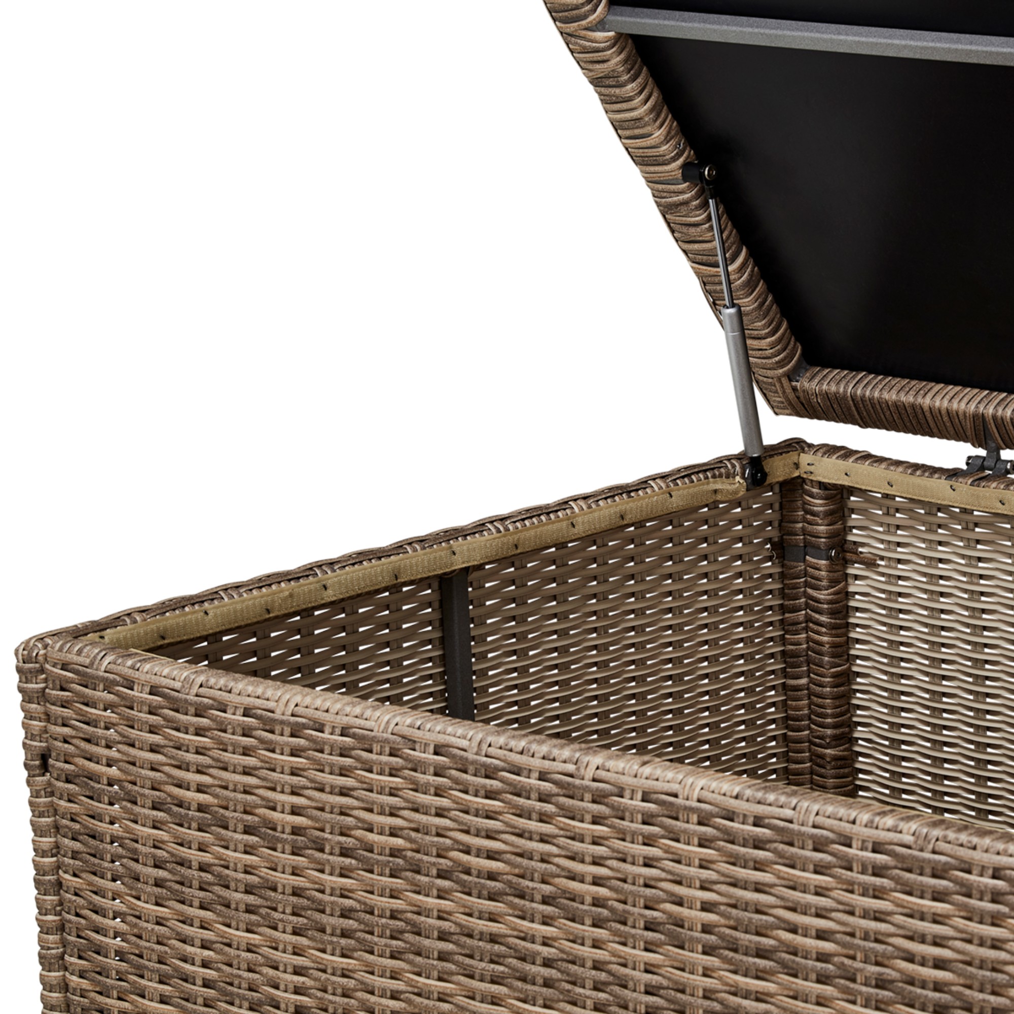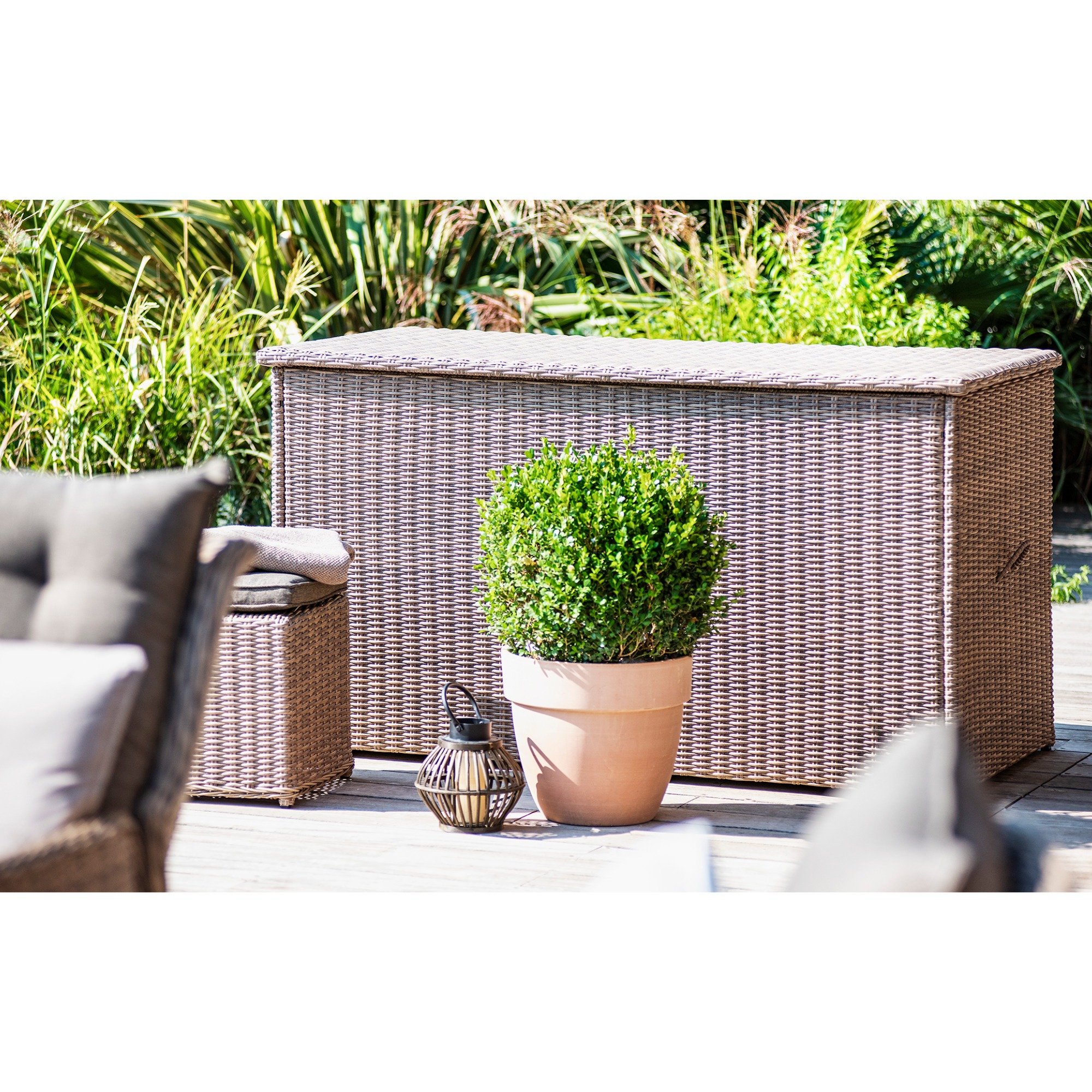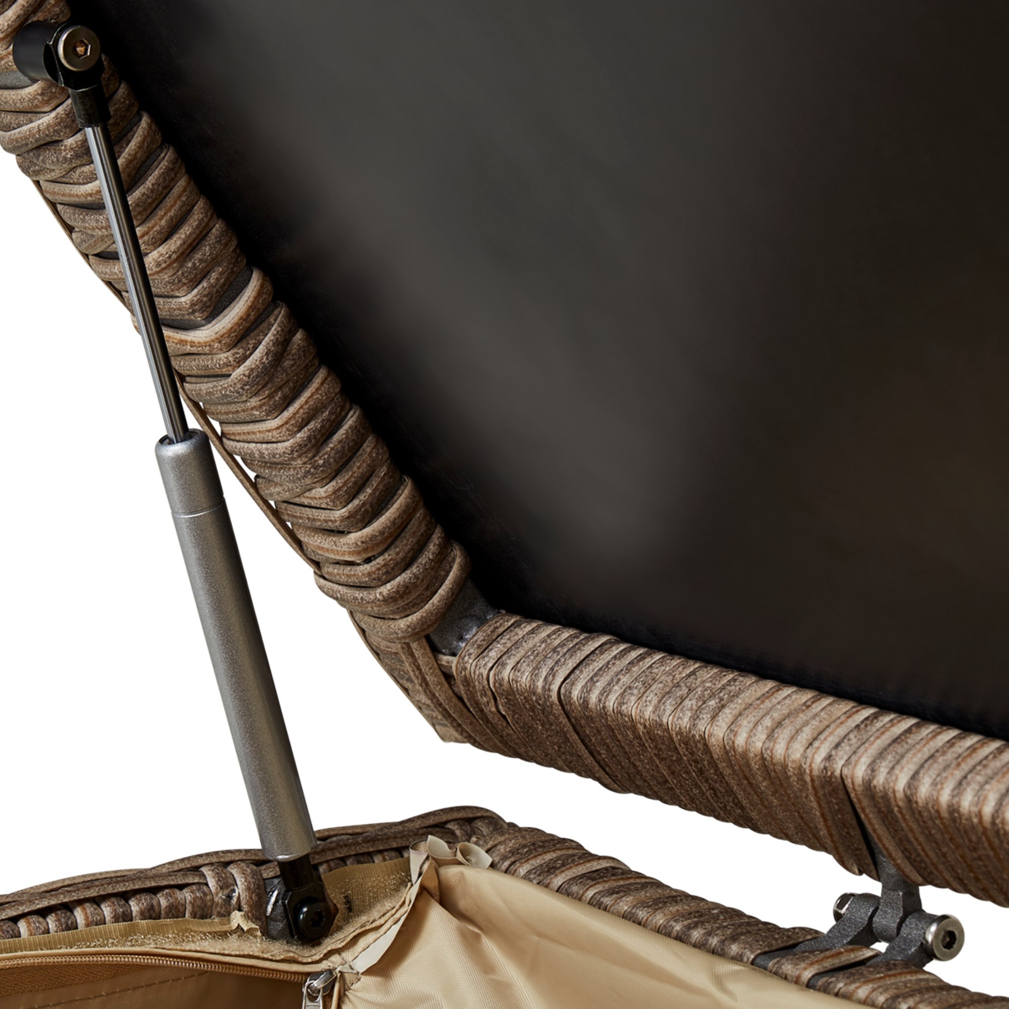 Pevná kovová konštrukcia boxu je vypletaná polyratanom, ktorý je odolný proti UV žiareniu.