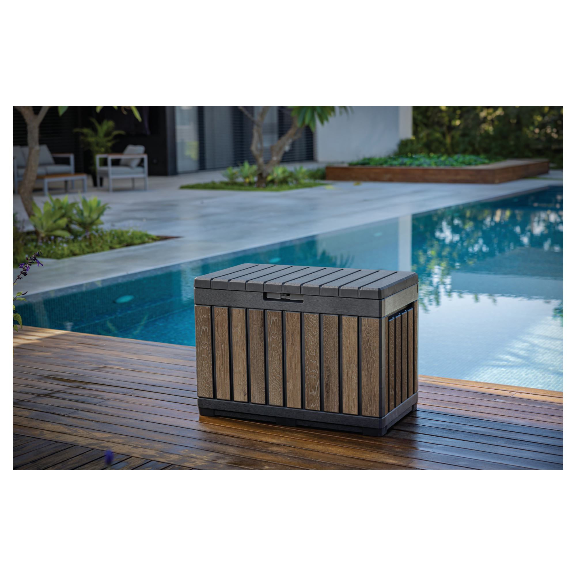 Záhradný úložný box KENTWOOD 190, ktorého objem je 190 litrov, ponúka praktickú kombináciu úložného priestoru a miesta na sedenie pre jedného dospelého.