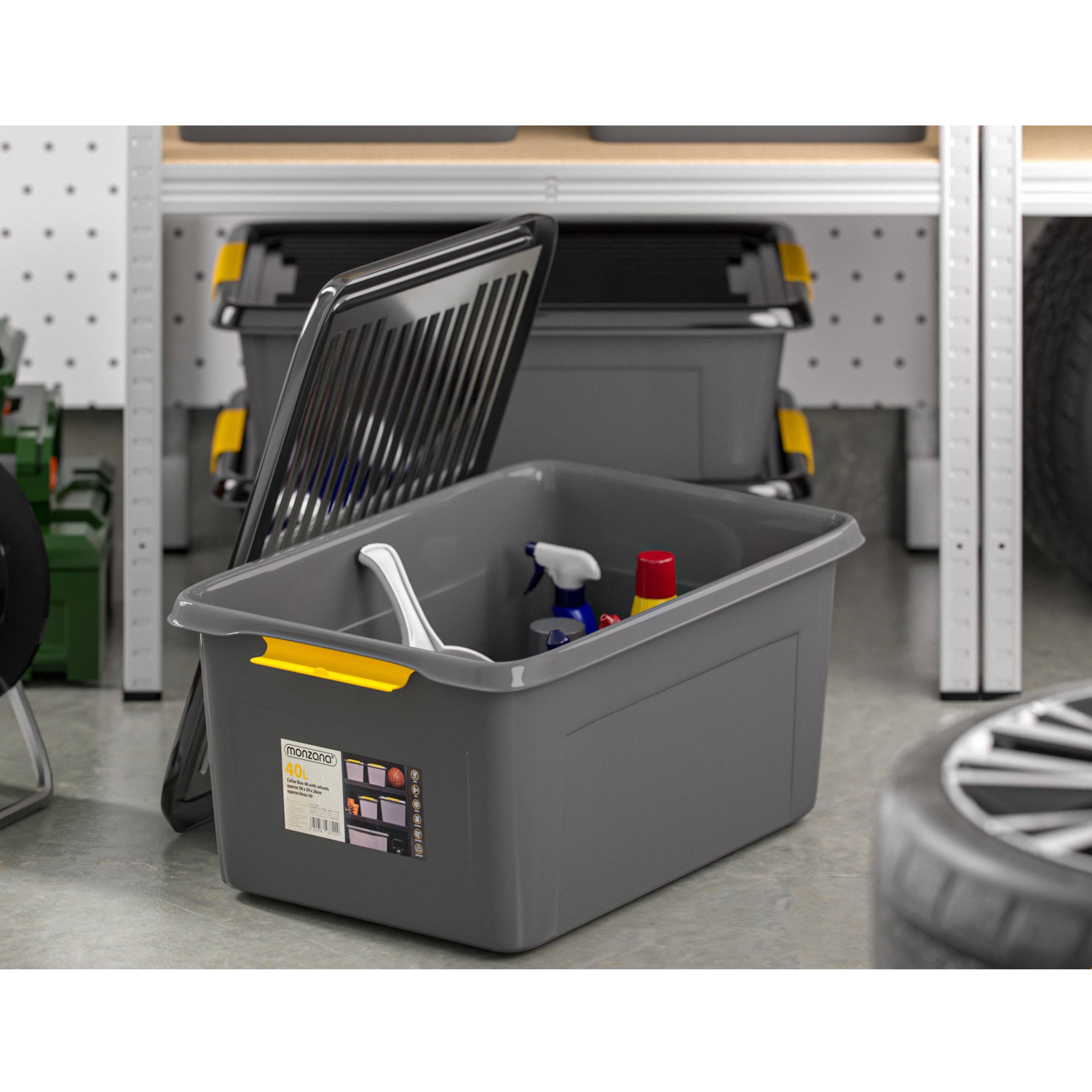 Praktický úložný box MONZA s objemom 40 litrov ponúka spoľahlivé riešenie na prehľadné uloženie najrôznejších predmetov v domácnosti, dielni aj garáži. Vďaka možnosti stohovania pomáha efektívne šetriť miesto a udržať poriadok.