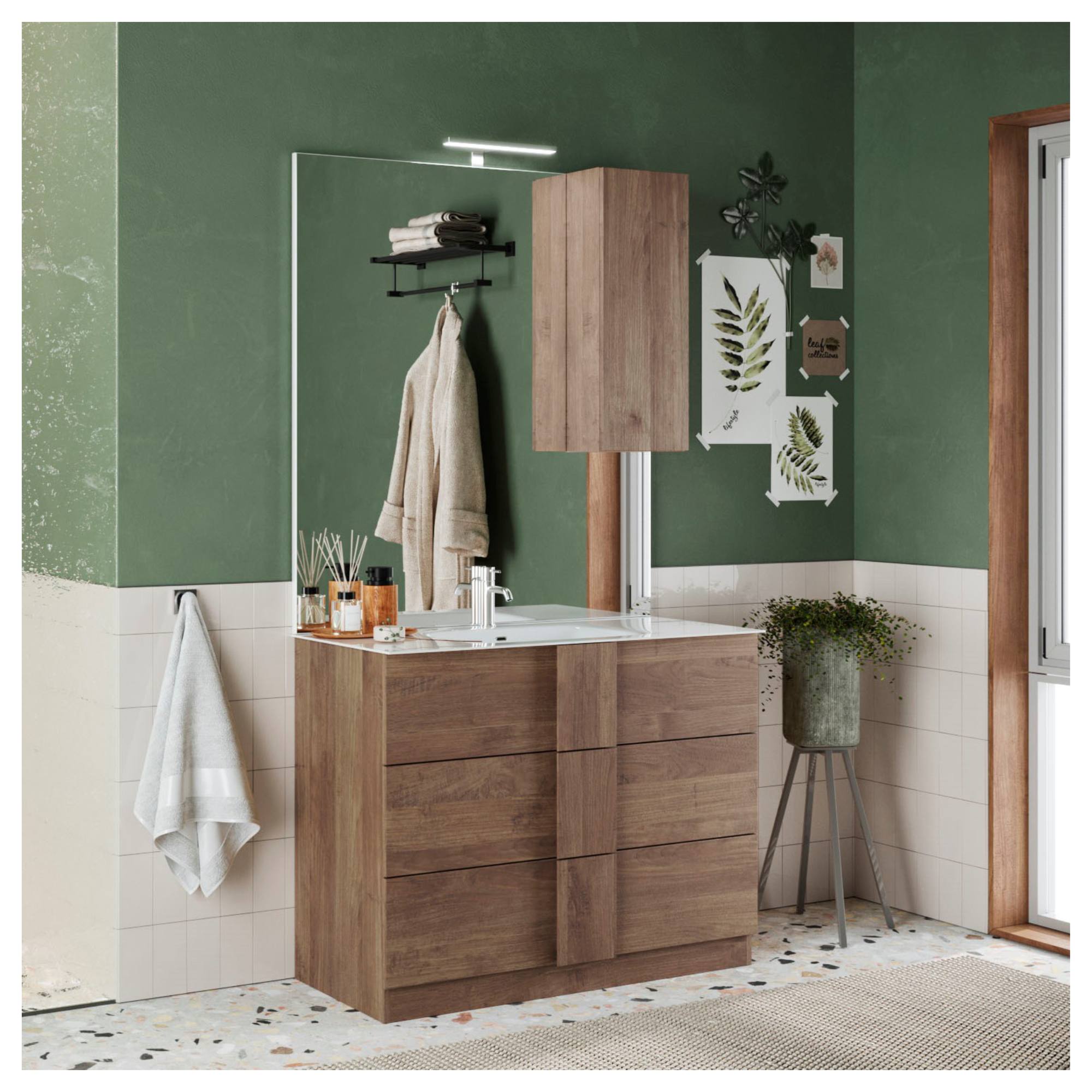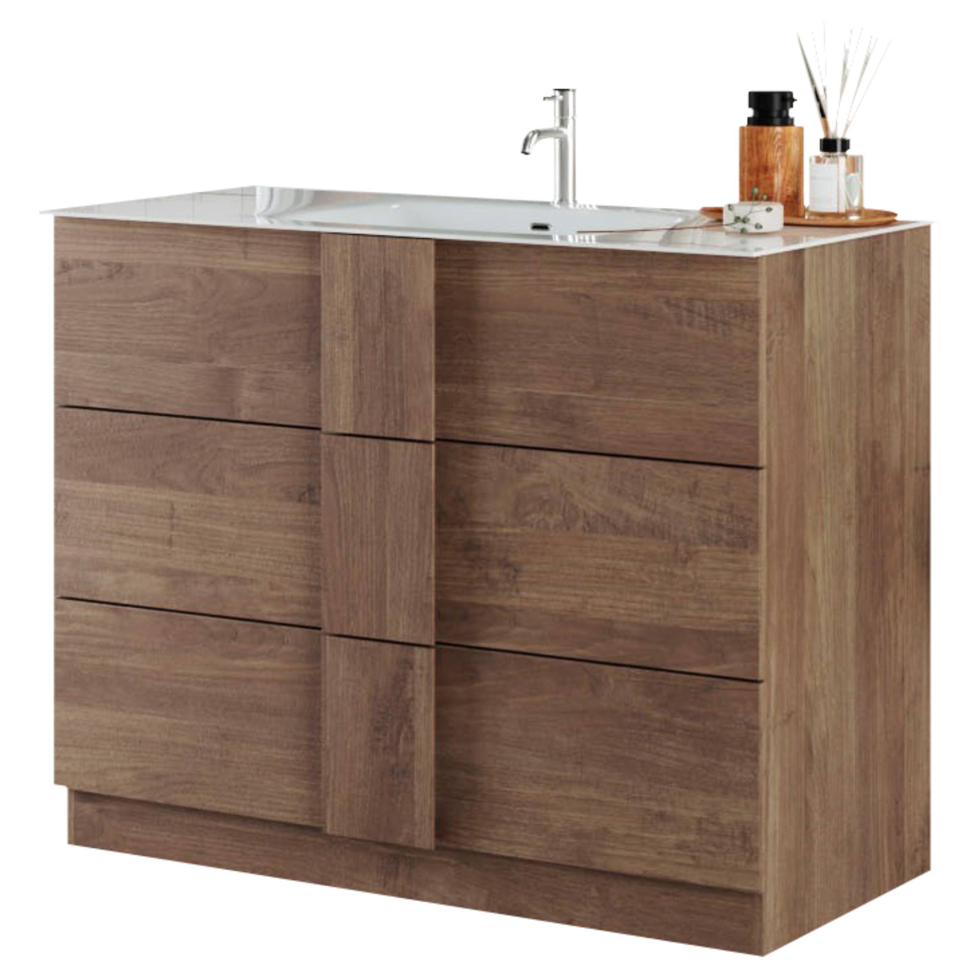 Umývadlová skrinka JUPITER 7 v prírodnom orechovom dekore je ideálnou voľbou do moderných kúpeľní. Vďaka štýlovému vzhľadu a dostatočne veľkému úložnému priestoru je skrinka veľmi praktickým kusom nábytku.
