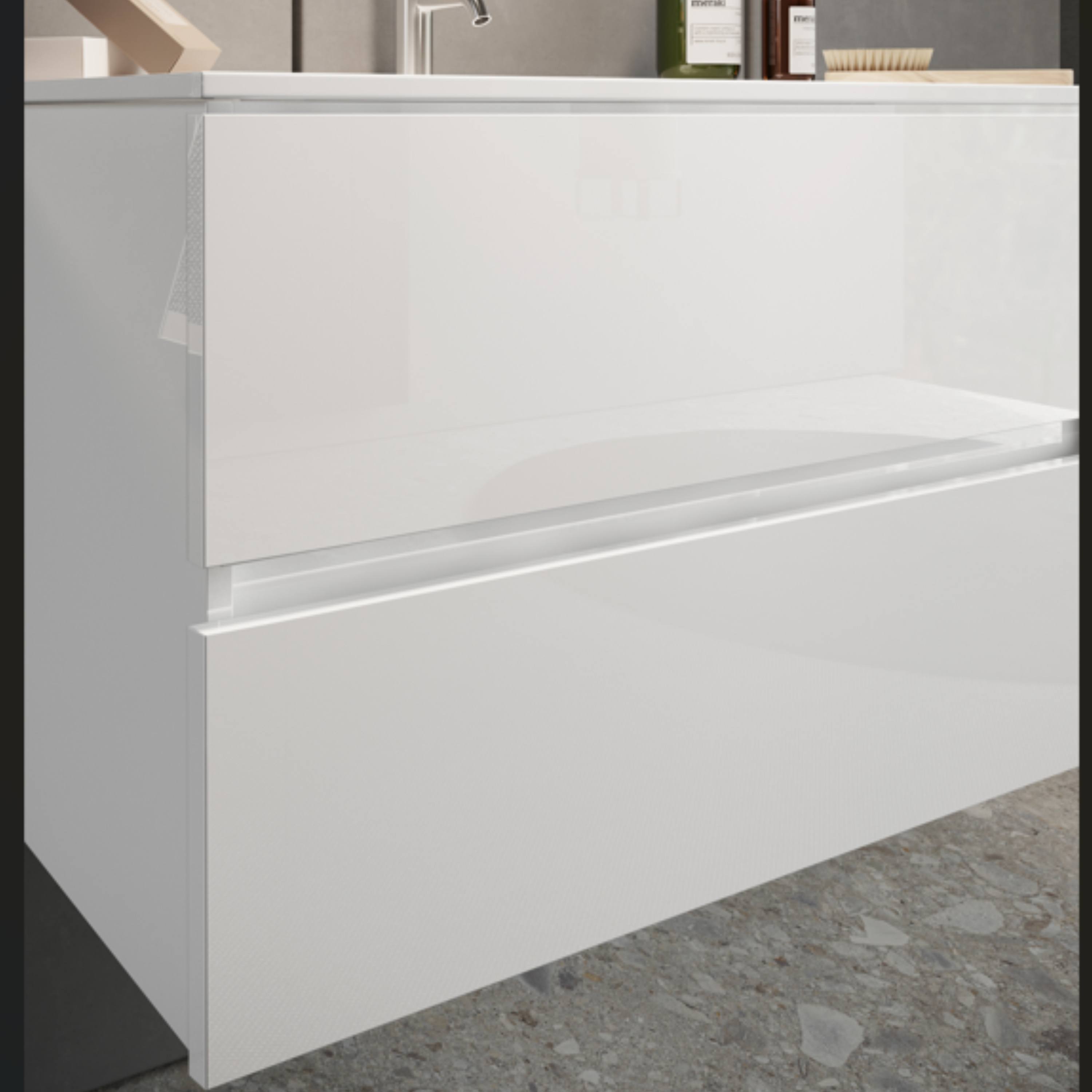 Umývadlová skrinka STOR 2 je praktickým riešením úložného priestoru pre malé kúpeľne. Kombinácia lesklej bielej a bezrúčkového riešenia zásuviek pôsobí futuristicky a bude sa vynímať v modernej kúpeľni.