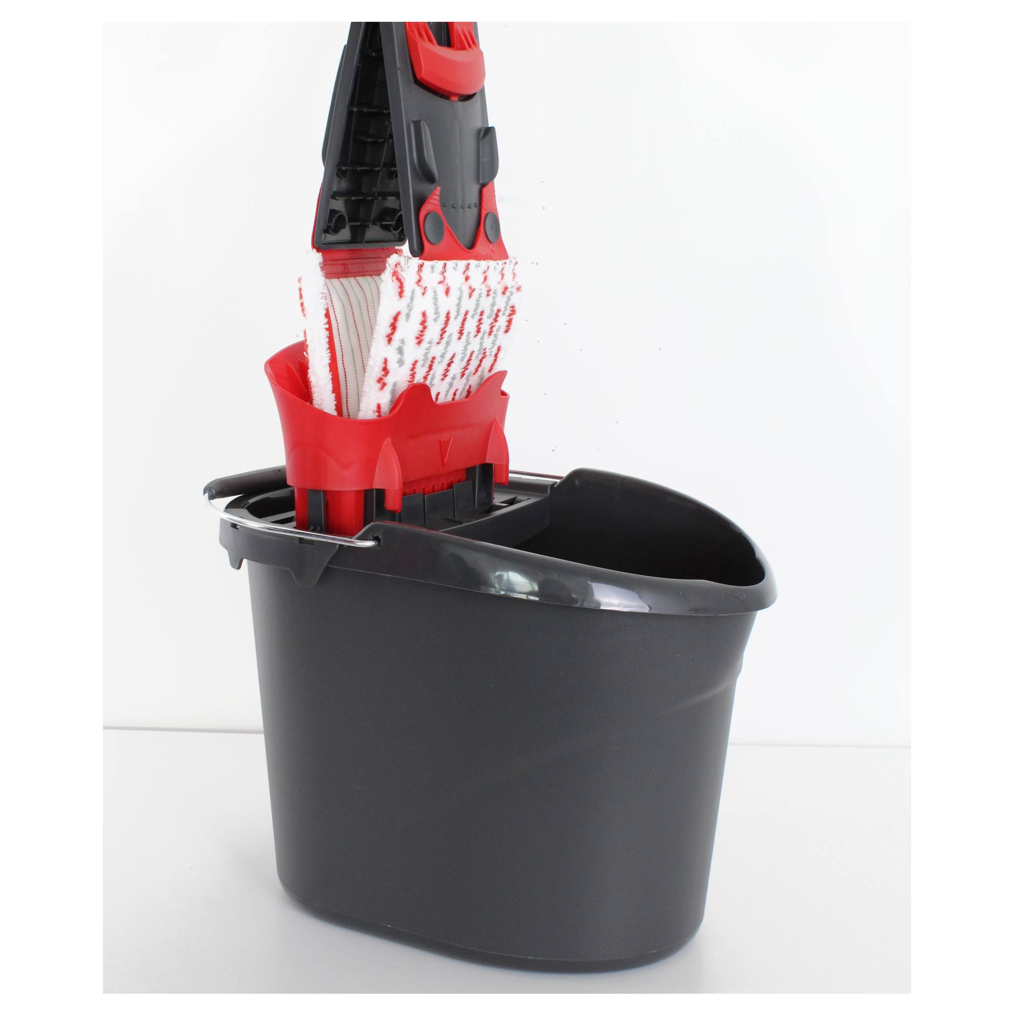 Sada obsahuje mop a vedro so žmýkacím košom. Mop je vybavený 2 druhmi vlákien na ľahšie čistenie. Mikroaktívne vlákna si hravo poradia s mastnotou a abrazívne vlákna so zaschnutými nečistotami. Vďaka flexibilnému kĺbu sa mop dostane aj na zle prístupné miesta. Vedierko disponuje žmýkacím košom s technológiou Power Press, ktorá znižuje námahu pri žmýkaní až o 30%. Vďaka dôkladnému vyžmýkaniu je vhodný na všetky typy tvrdých povrchov, ako PVC, plávajúce podlahy, parkety a dlažby. Vedierko má objem 10 L, ľahko prenositeľných vďaka kovovej rúčke. Tyč mopu s dĺžkou 120 cm je rozdelená na 3 diely, ktoré jednoducho rozložíte na úspornejšie skladovanie.