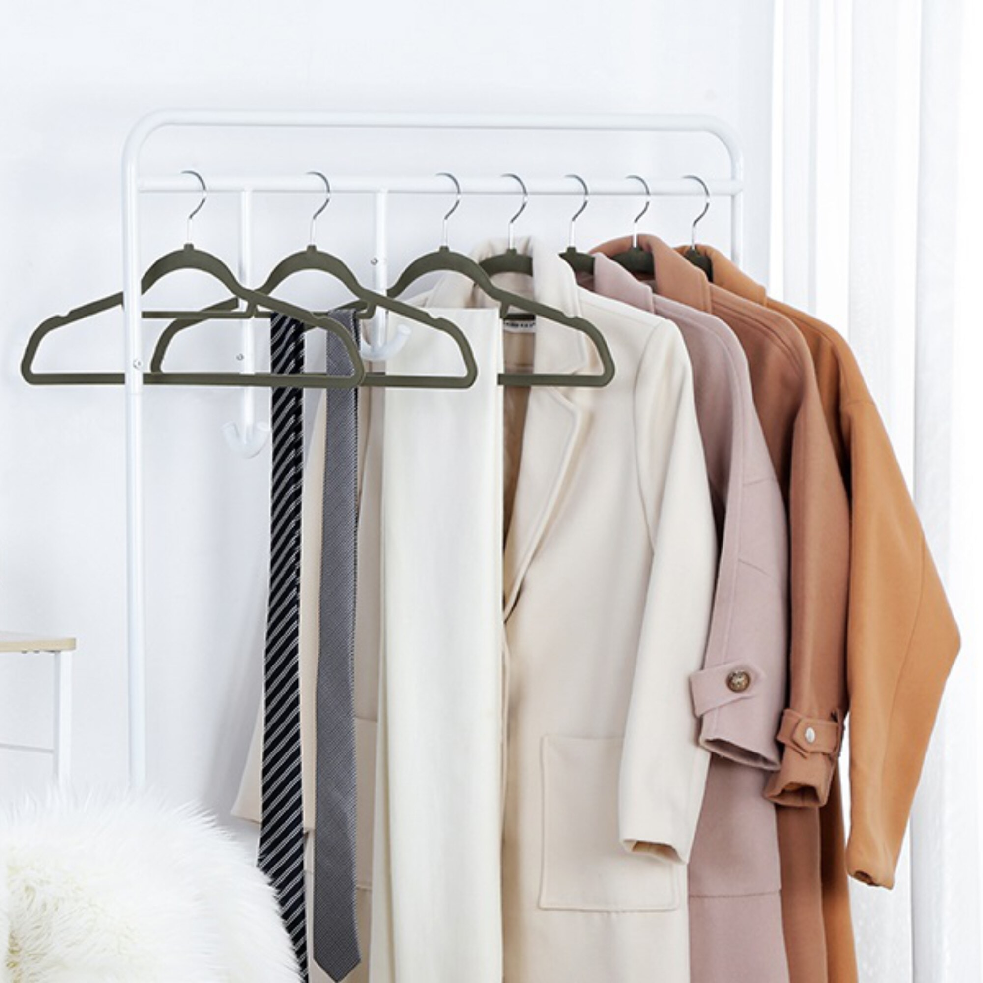 - Poťah zamatového vzhľadu zabraňujúci kĺzaniu odevu z vešiaka