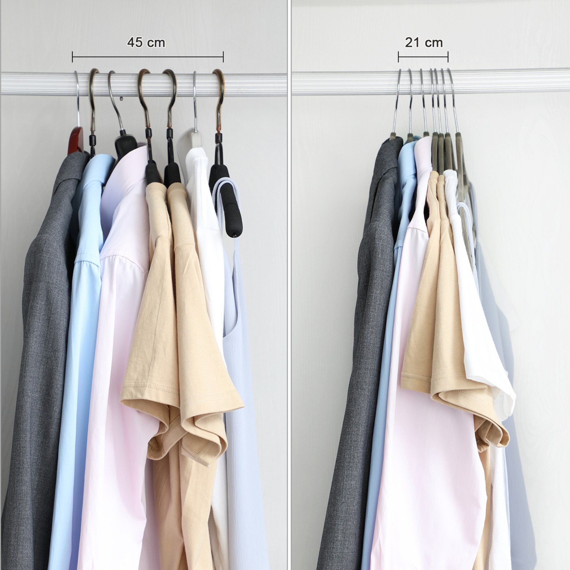 Vneste poriadok do vašej skrine a usporiadajte svoje oblečenie s vešiakmi CRF20, z ktorých vám navyše nič neskĺzne. Jemný poťah semišového vzhľadu udrží oblečenie na svojom mieste. Na okrajoch sú výrezy určené na uchytenie dámskych tričiek, podprseniek a pod. Konštrukcia z ABS plastu je pružná, ľahká a v šatníku zaberie podstatne menej miesta ako klasické drevené vešiaky. Kovový háčik môžete otočiť o 360 ° podľa potreby a môžete ich zaťažiť až 5 kg. Vešiaky tak unesú aj ťažobu plných vreciek, šatiek a ďalšieho oblečenia.