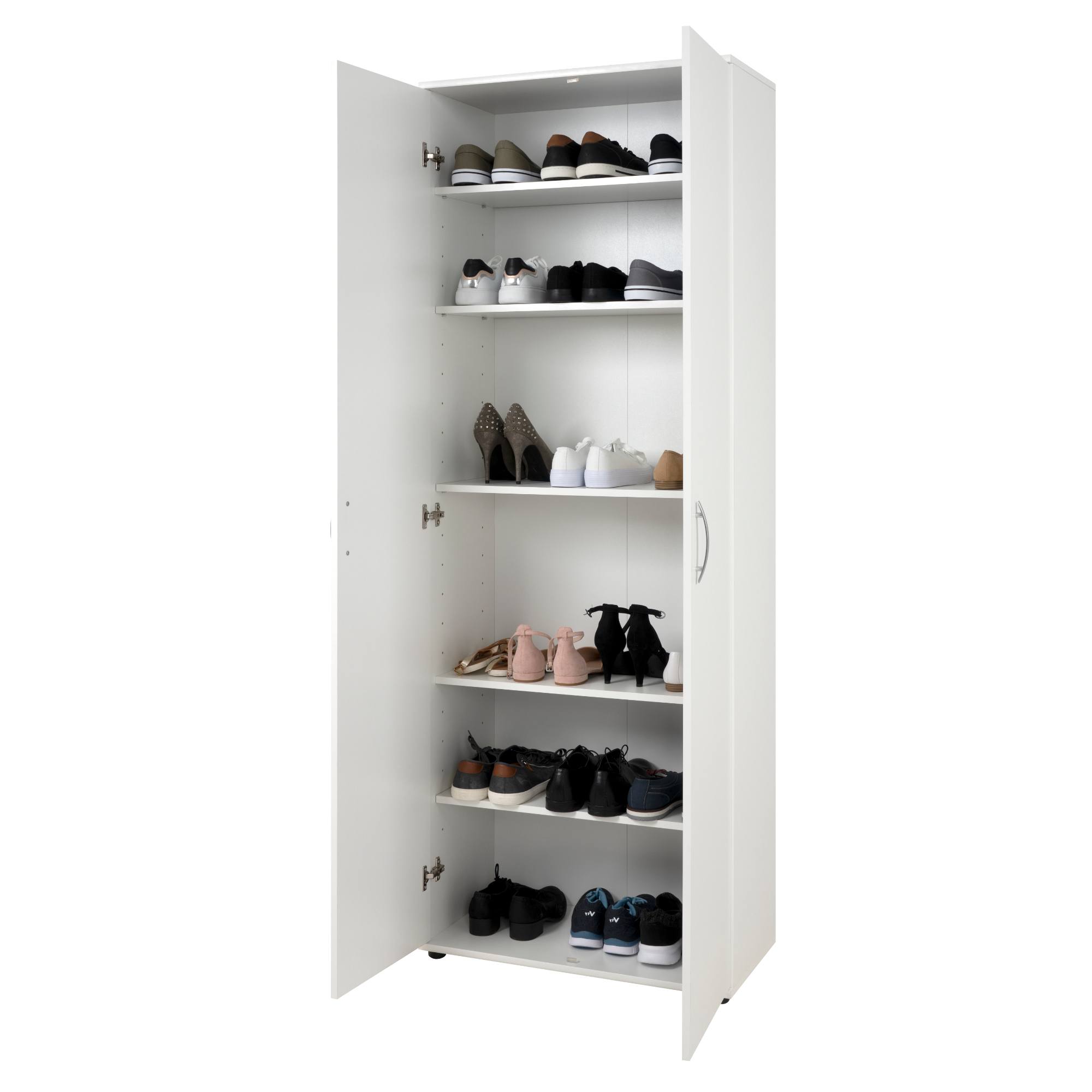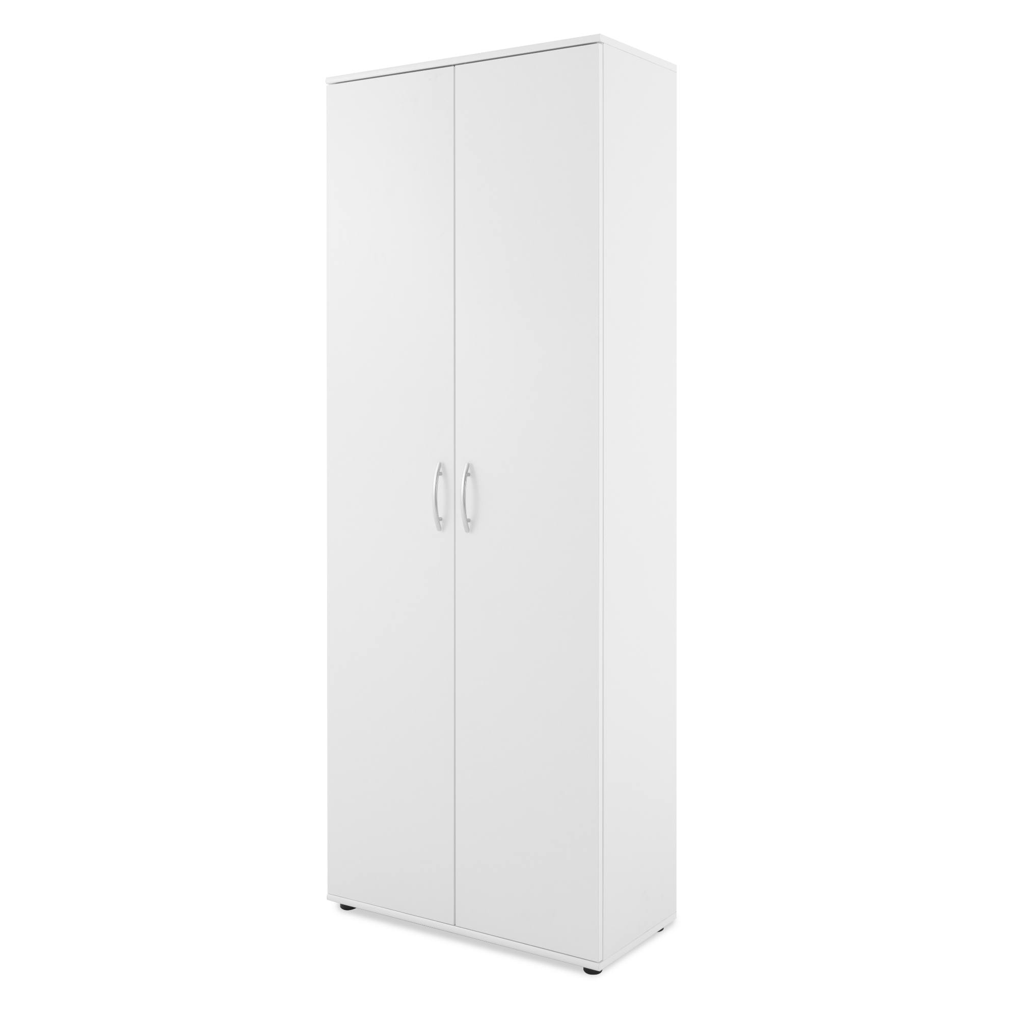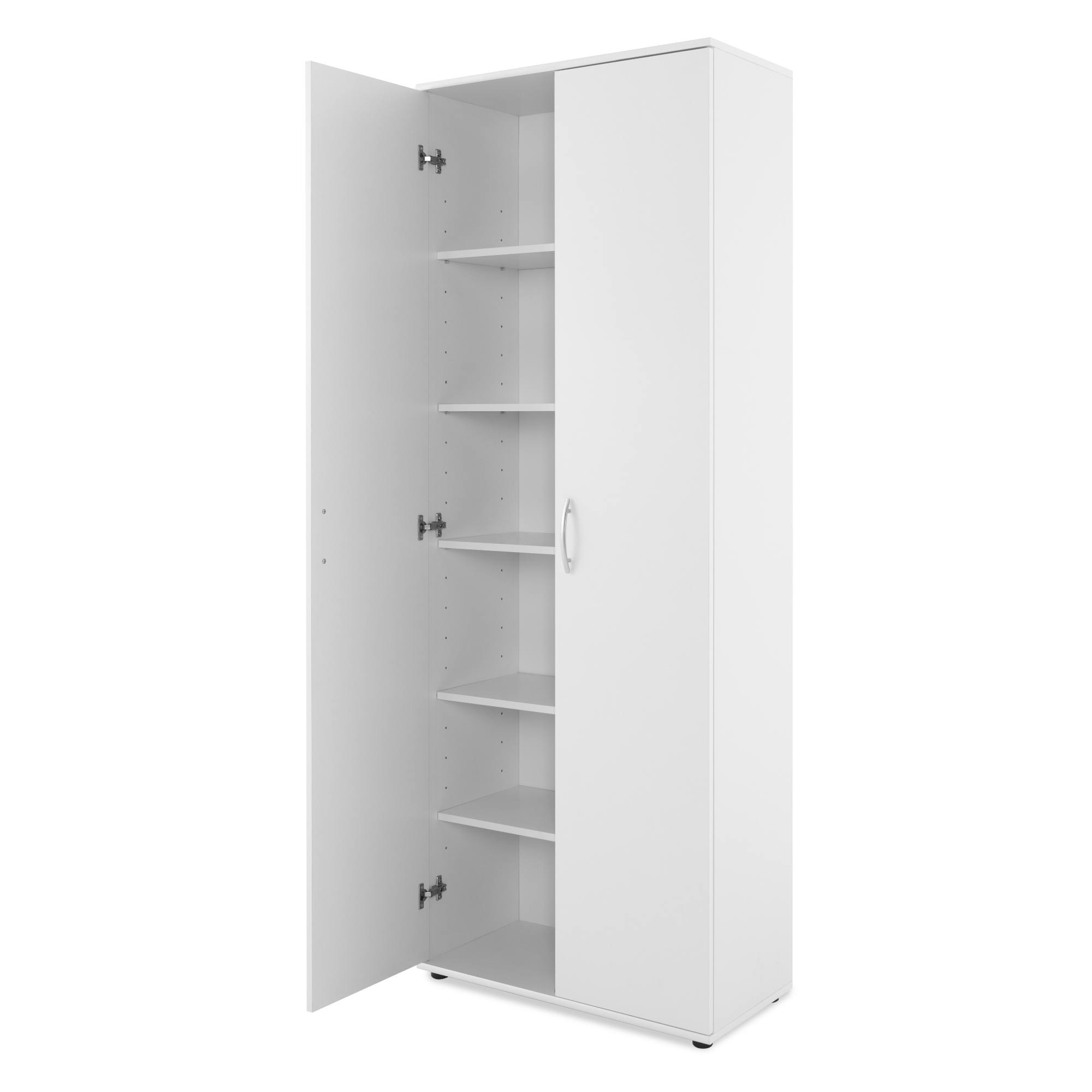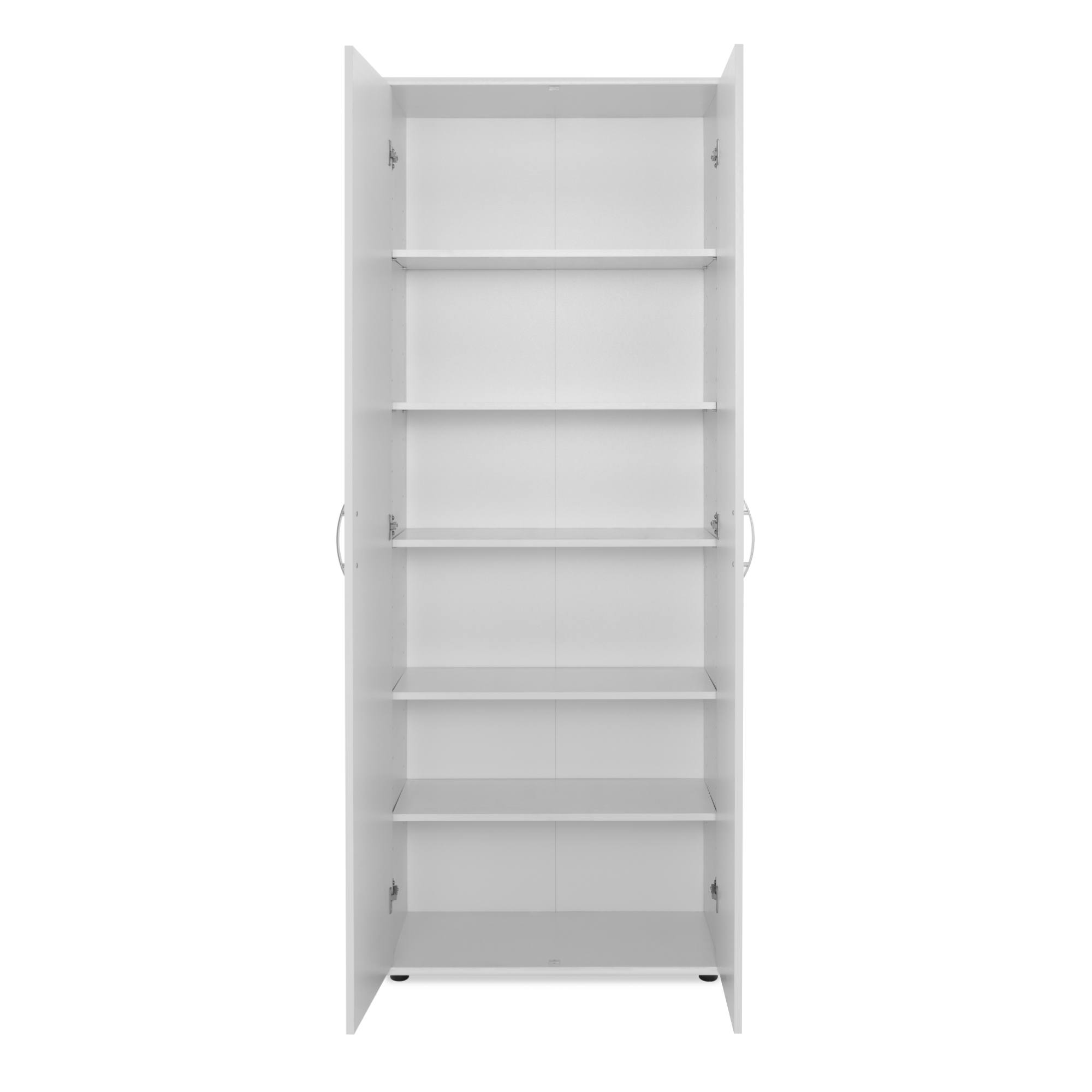 Skriňa má 2 otočné dvere, za ktorými sa nachádza prakticky členené vnútorné vybavenie vo forme 5 vložených políc. Otváranie dverí uľahčujú plastové rúčky vo farbe kovu.