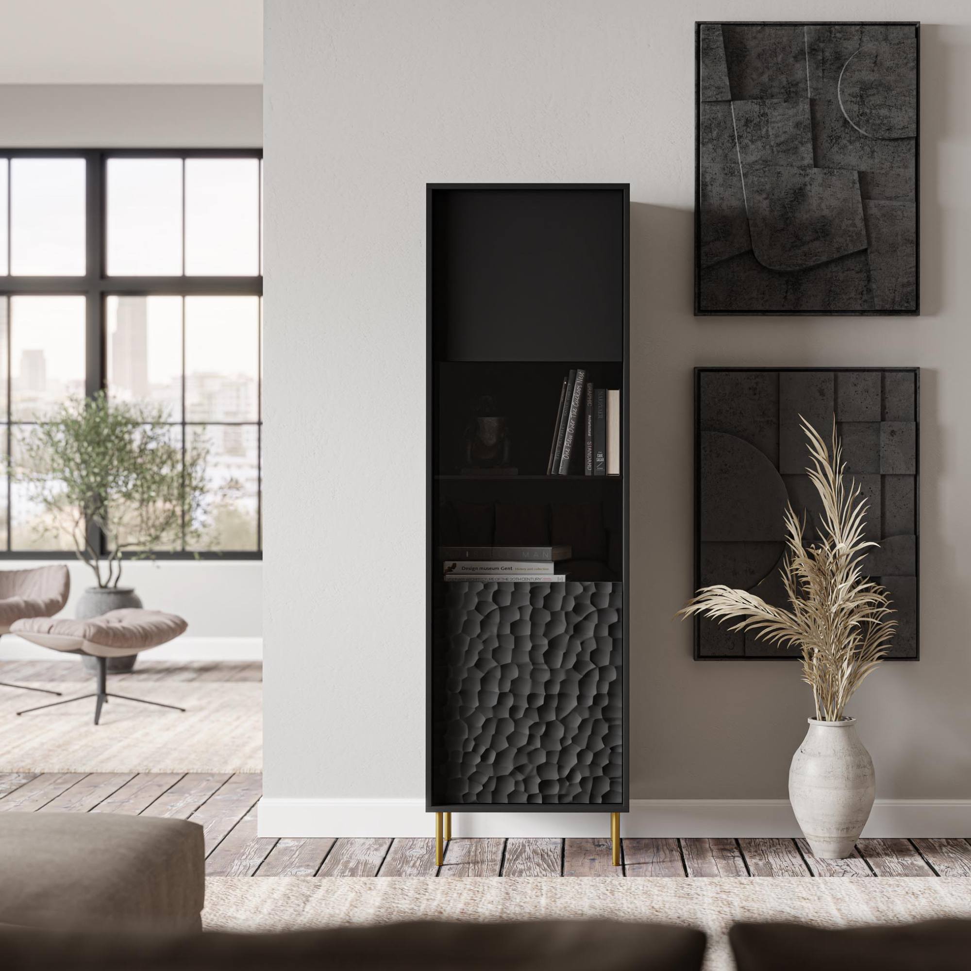 Vitrína BELLIT KM-1 - čierna/zlatá