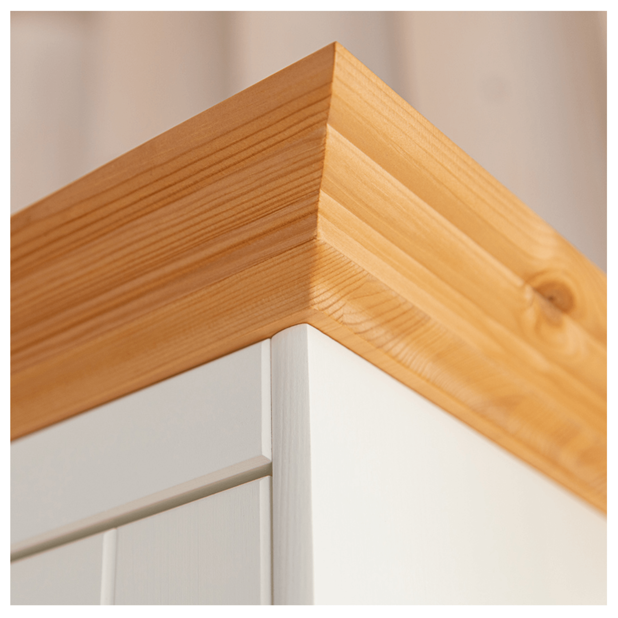 - Doplňujúca poznámka: Horná doska z masívneho borovicového dreva je vyhotovená v prírodnom vzhľade.