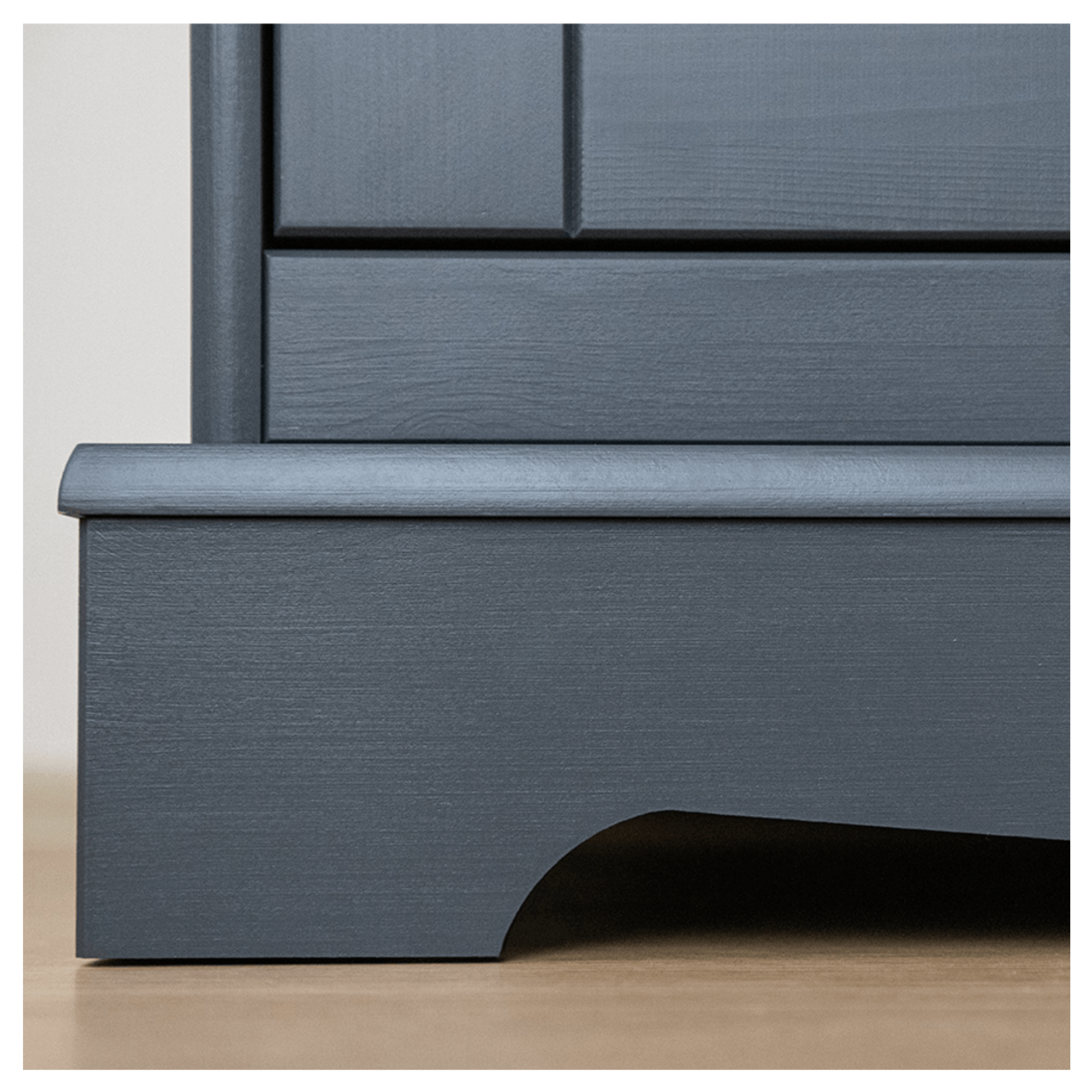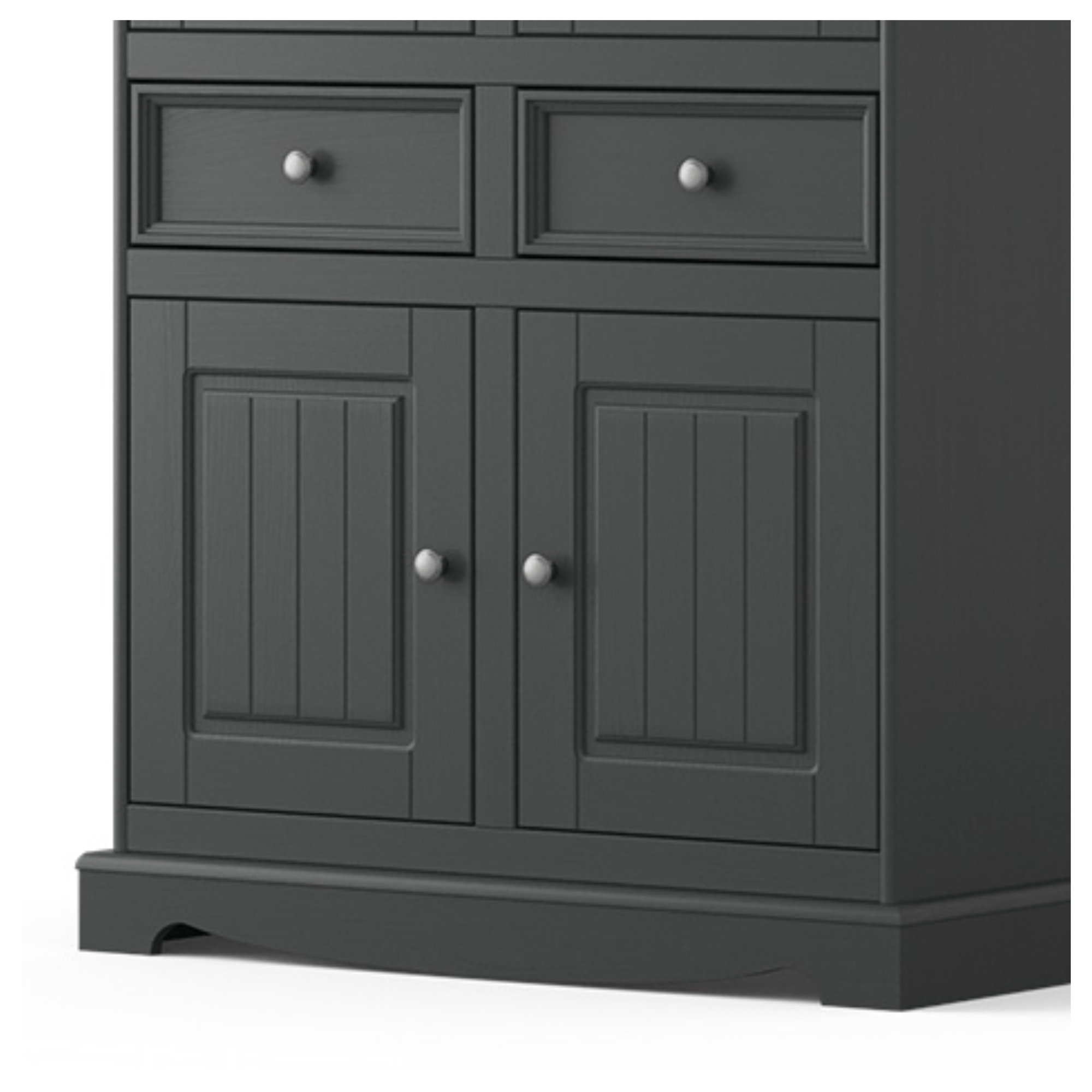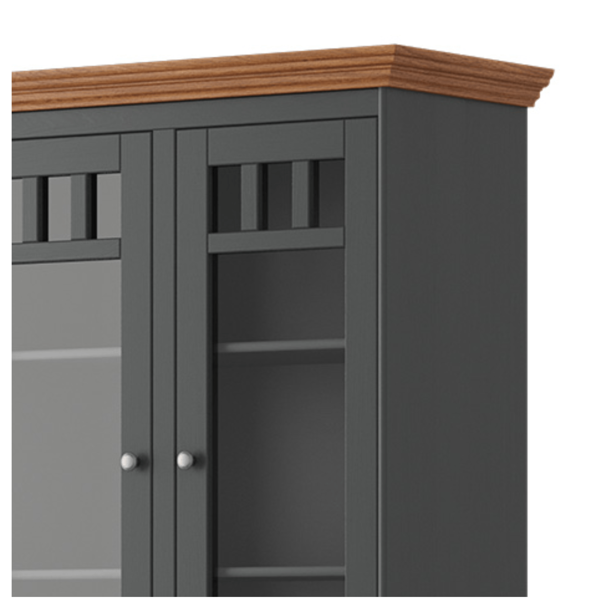 Vitrína BELLU 2D je nadčasovým, originálnym kusom nábytku v tmavej grafitovej farbe. Vyrobená je z masívneho dreva fínskej borovice, ktoré dodáva nábytku potrebnú odolnosť a dlhú životnosť. Ozdobená je množstvom dekoratívnych prvkov ako je frézovanie predných plôch, pilaster alebo zaujímavo riešená podstava, ktoré vytvárajú celkový atraktívny vzhľad s nádychom vidieka.