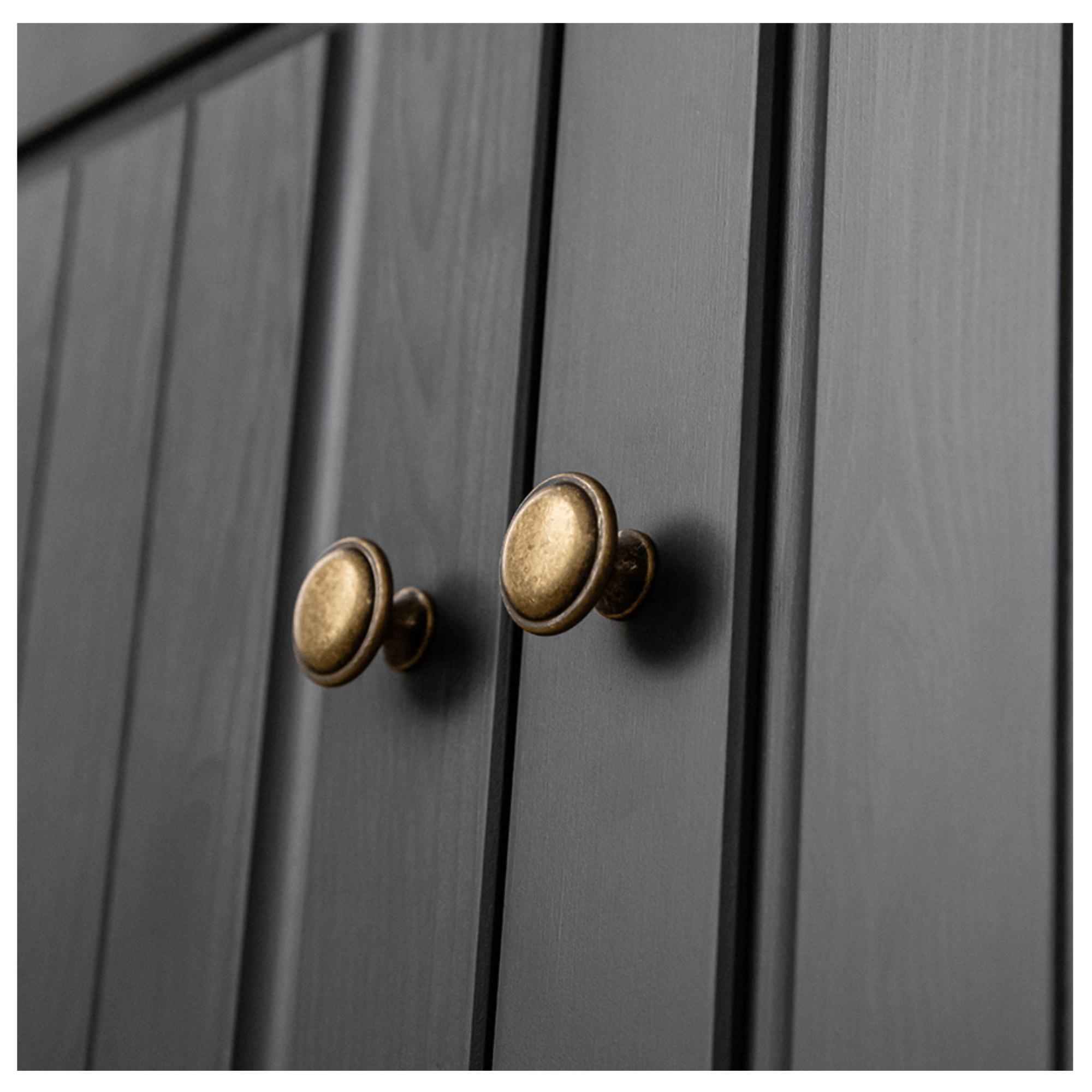 Hornú polovicu vitríny uzatvárajú 2 otočné, presklené dvere so 4 vloženými policami, ktoré sú ideálne na vystavenie všetkého, čo chcete mať neustále na očiach. Vystavené predmety budú chránené pred všadeprítomným prachom. Nižšie nájdete 2 praktické zásuvky s tichým dovieraním, kam schováte drobnosti, ktoré chcete mať neustále po ruke. Dvojica otočných dverí v spodnej časti uzatvára vnútorný priestor s 2 vloženými policami. Všetky predné plochy sú doplnené o kovové, okrúhle rúčky v starožitnej, zlatej farbe.