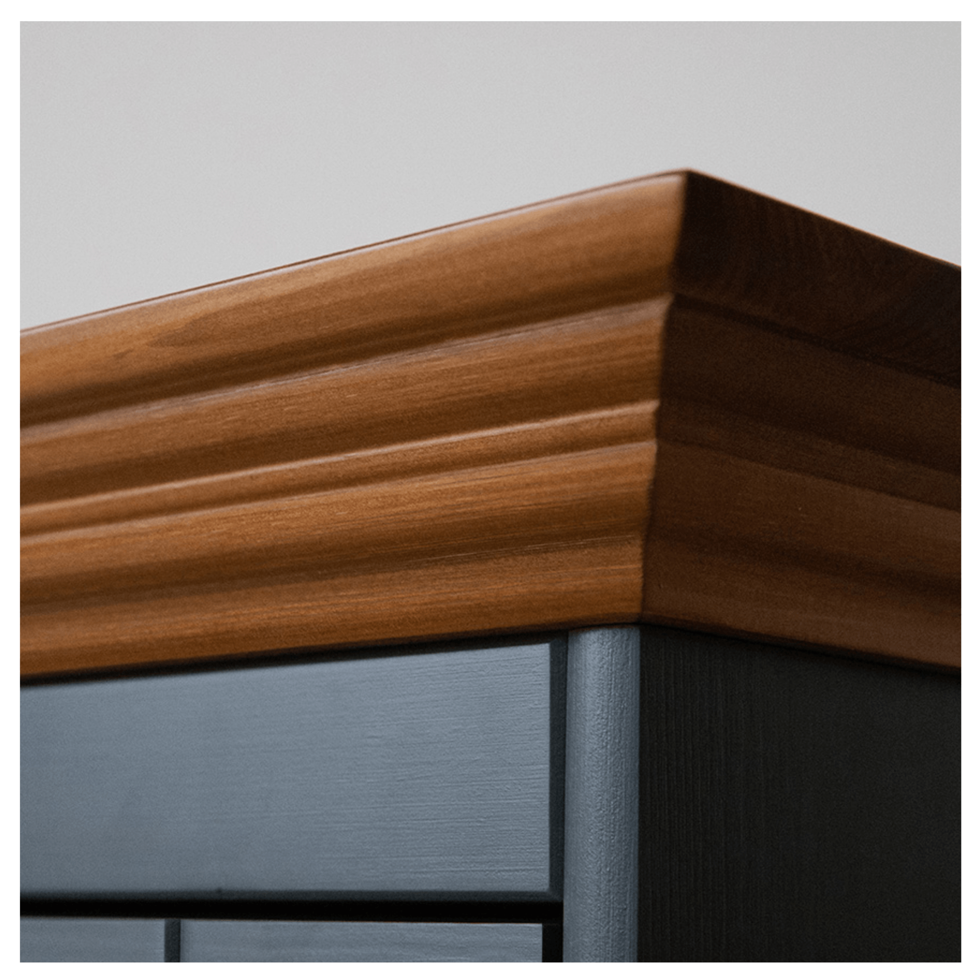 - Doplňujúca poznámka: Horná doska z masívneho borovicového dreva je morená do odtieňa duba.