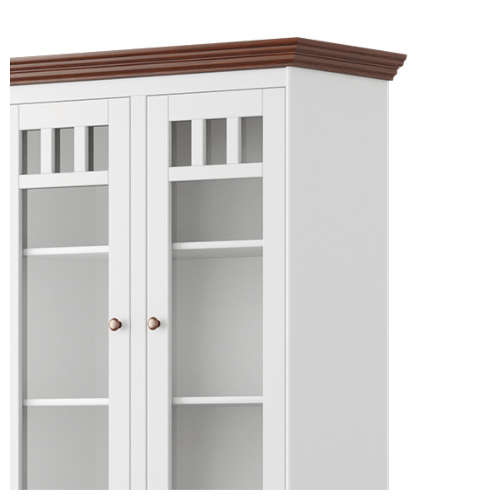 Vitrína BELLU 2D ponúka praktický, úložný priestor a tiež atraktívny vzhľad, vďaka ktorému zaujme na prvý pohľad. Je vyhotovená z masívneho dreva fínskej borovice zaručujúceho odolnosť a dlhú životnosť. Pod bielou farbou nenápadne presvitá prírodná kresba dreva, ktorá robí z každého kusa nábytku originál. Romantický vzhľad s nádychom vidieka dotvára množstvo klasických ozdobných prvkov ako je dekoratívne frézovanie, pilaster vo vrchnej časti a zaujímavo tvarovaná podstava.