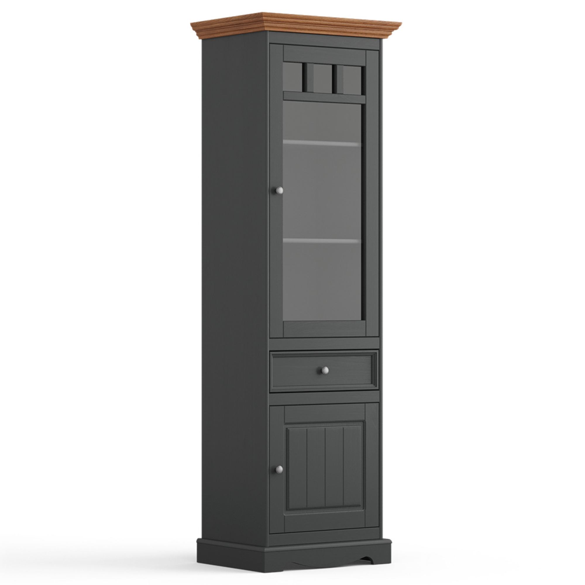 Vitrína BELLU sa vyznačuje ozdobnými prvkami zdôrazňujúcimi charakter provensálskeho štýlu. Použité drevo fínskej borovice sa vyznačuje vysokou plasticitou a mäkkosťou. Ekologické drevo borovice je ľahko spracovateľné, a pritom odolné.