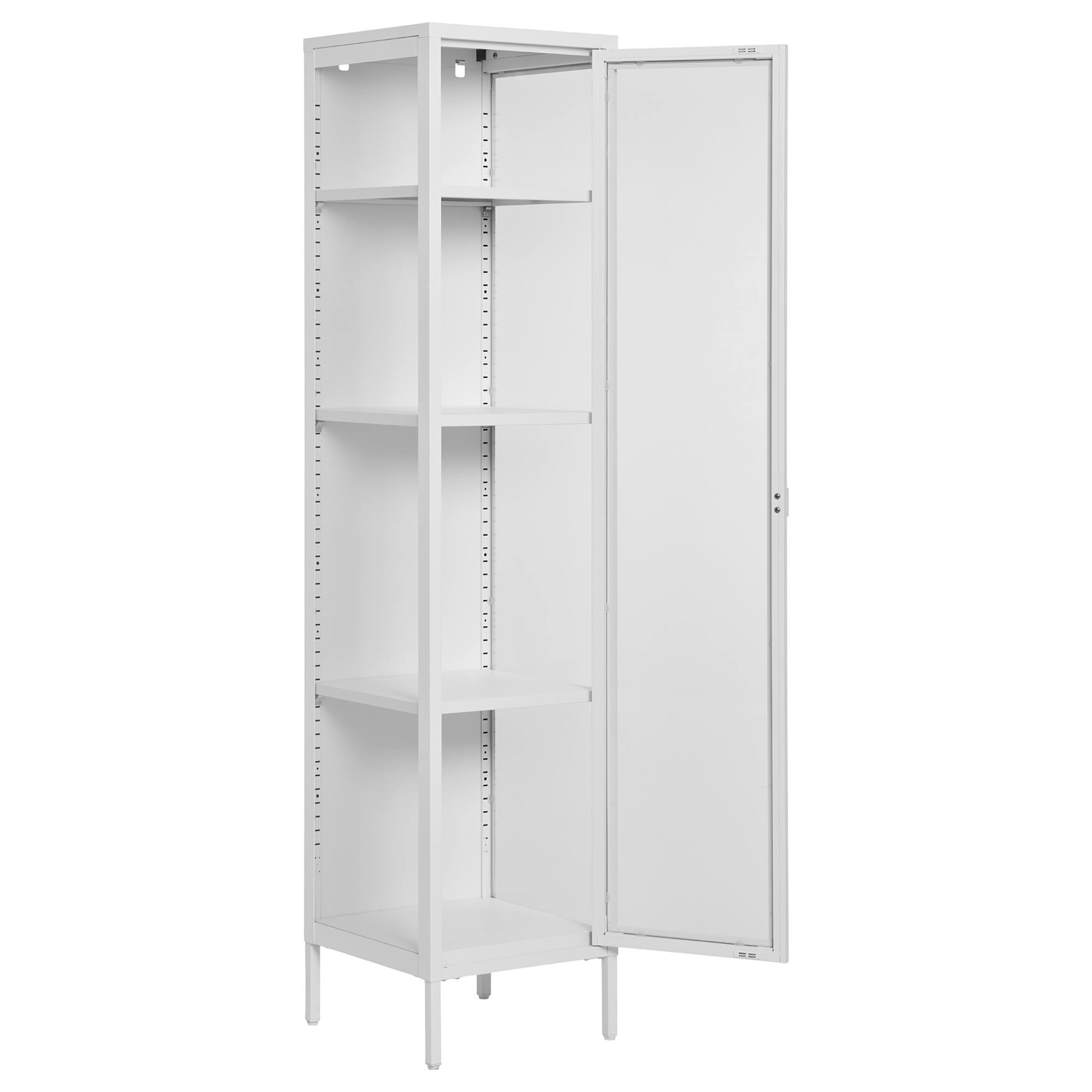 Vitrína BRASBONI bude vo vašej obývacej izbe zaručene vynikať. Vďaka svojmu vyhotoveniu v neutrálnych farbách a oceľovej konštrukcii skvele vyzdobí moderne založený interiér. Dostanete rozsiahly úložný priestor na vystavenie vašich dekorácií či cenností. Môžete ich umiestniť do troch vnútorných políc, ktoré sú uschované za presklenými dvierkami. Povrch vitríny sa vám bude ľahko udržiavať.