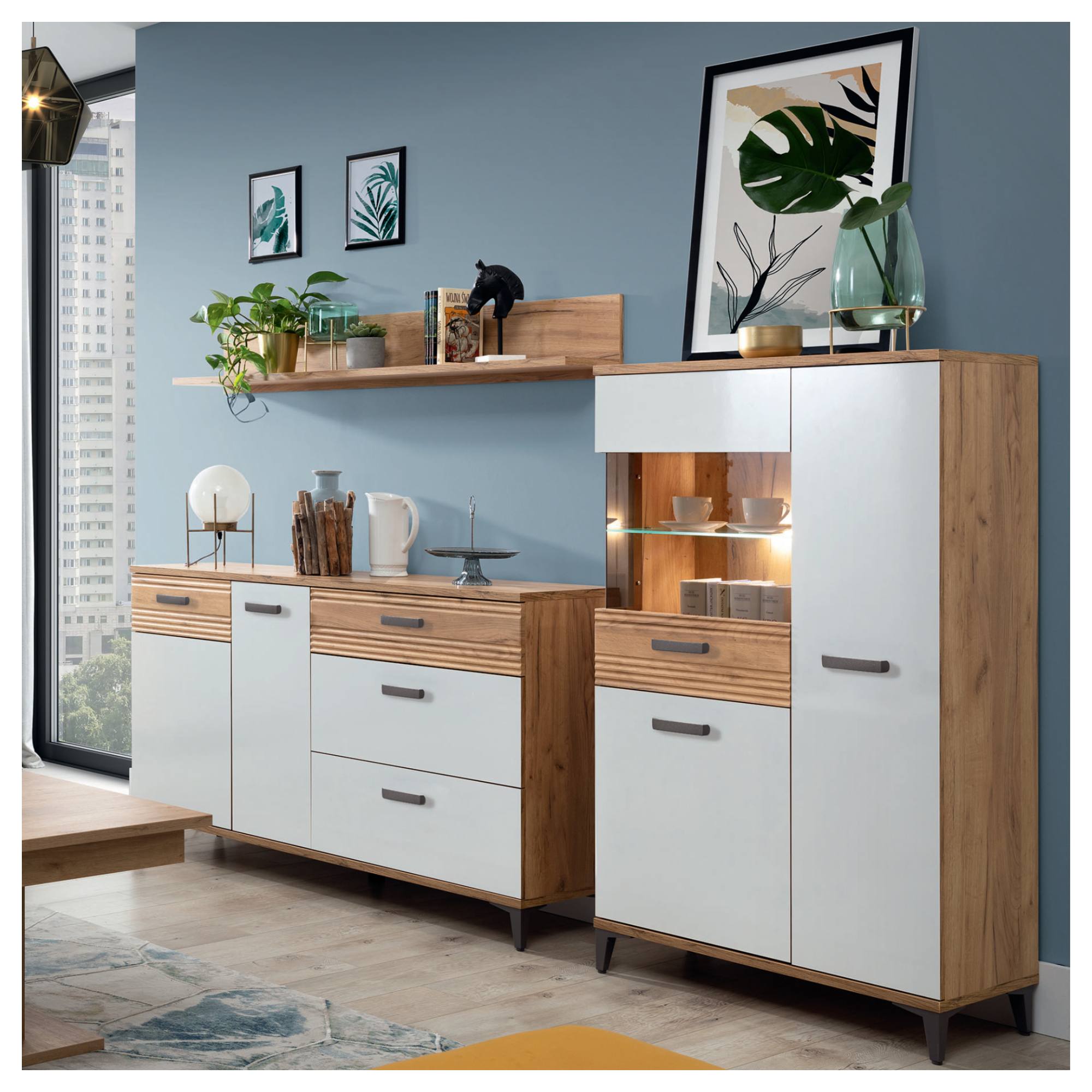 Vitrína DARCY SB6 - zlatý remeselný dub/alpská biela lesklá
