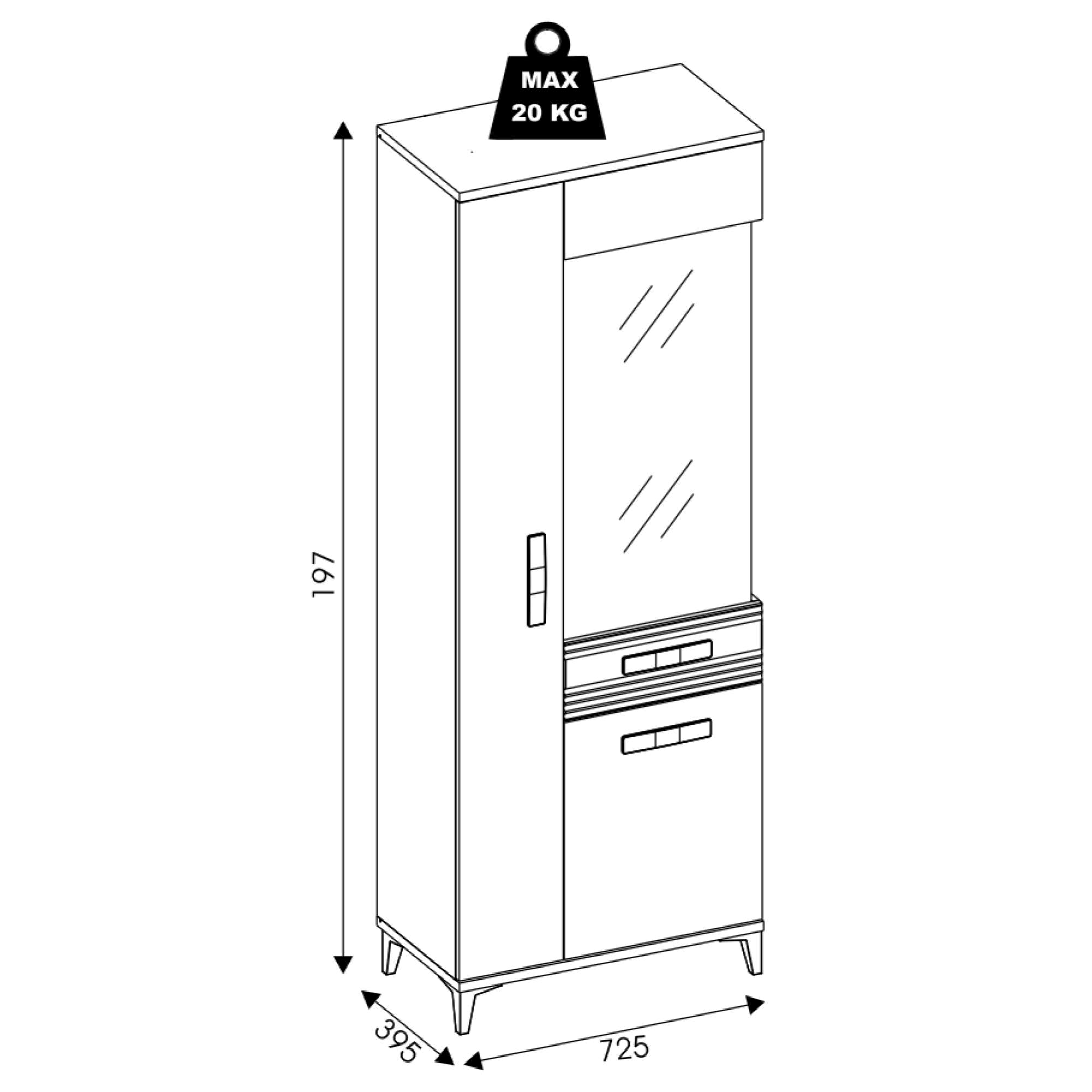 Úložný priestor sa skladá zo sedem vložených políc, z toho dve sú sklenené, takže vaše vystavené dekorácie budú za presklenými dvierkami vždy na očiach. Manipuláciu dvierok vám navyše uľahčí mechanizmus nerušeného zatvárania SOFT CLOSE. Povrch vitríny sa vyznačuje jednoduchou údržbou.