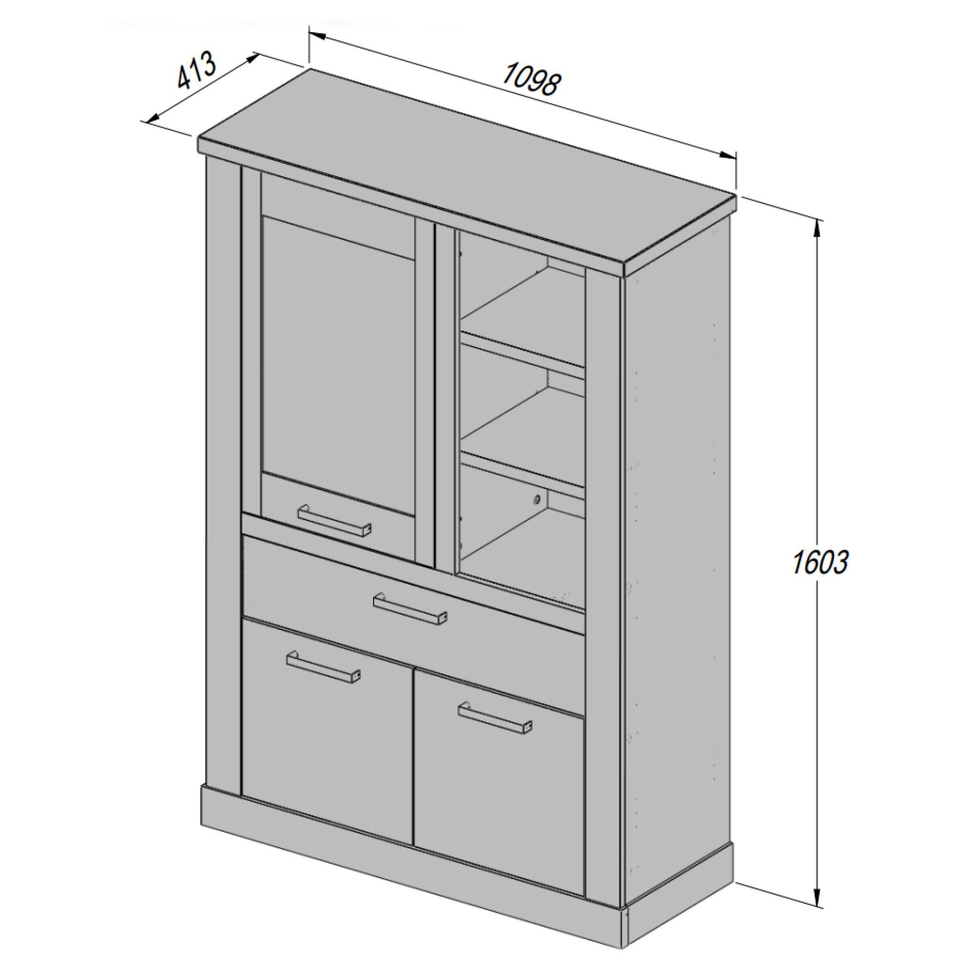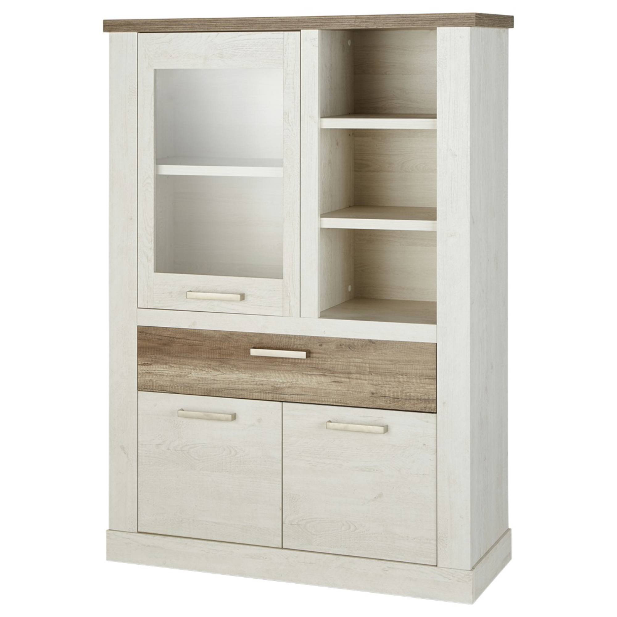 Laminovaná konštrukcia, ktorú podčiarkuje elegantný vintage dizajn, ponúka dostatok priestoru na vaše dekorácie, knihy či iné drobnosti. Originálna kombinácia dekorov pínie bielej a duba antik je doplnená presklenými dvierkami. Vitrínu možno dodatočne doplniť LED osvetlením. Vďaka svojmu dizajnu skvele zapadne do interiéru vo svetlých a pastelových tónoch.