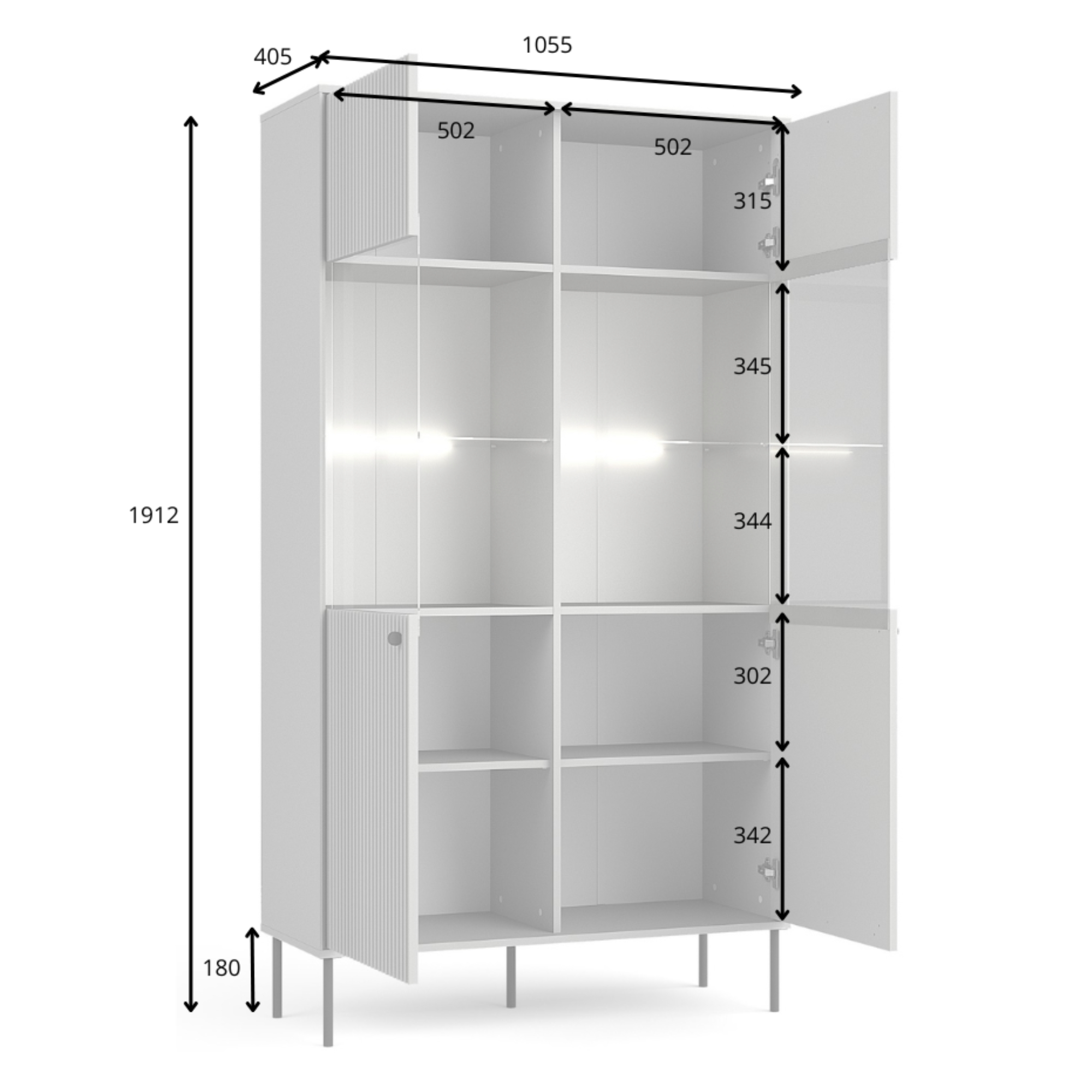Jej súčasťou je 8 vložených políc umiestnených za dvierkami. Na police, ktoré sa nachádzajú za presklenou časťou dvierok, môžete vystaviť svoje obľúbené dekorácie alebo najzaujímavejšie predmety z vašej zbierky. K vitríne je možné dokúpiť aj osvetlenie.