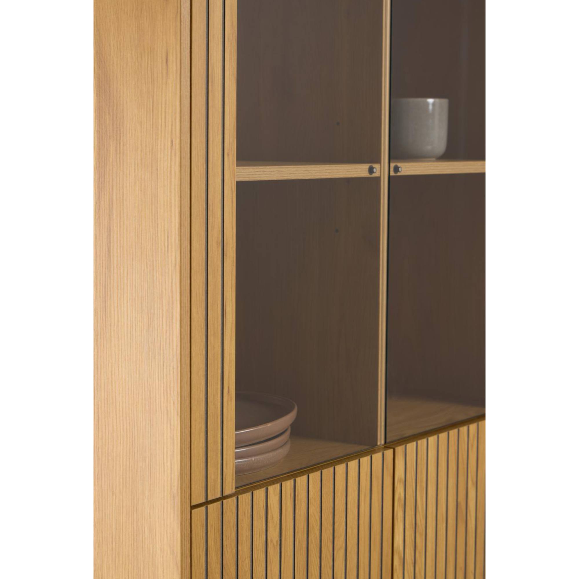 Vitrína obsahuje miesto za presklenými a plnými dvierkami, ktoré vám poskytnú dostatok úložného priestoru na všetky predmety, ktorým chcete nájsť vo svojej domácnosti stále miesto. Praktické rúčky vám uľahčia celkovú manipuláciu. Povrch vitríny sa vyznačuje jednoduchou údržbou.