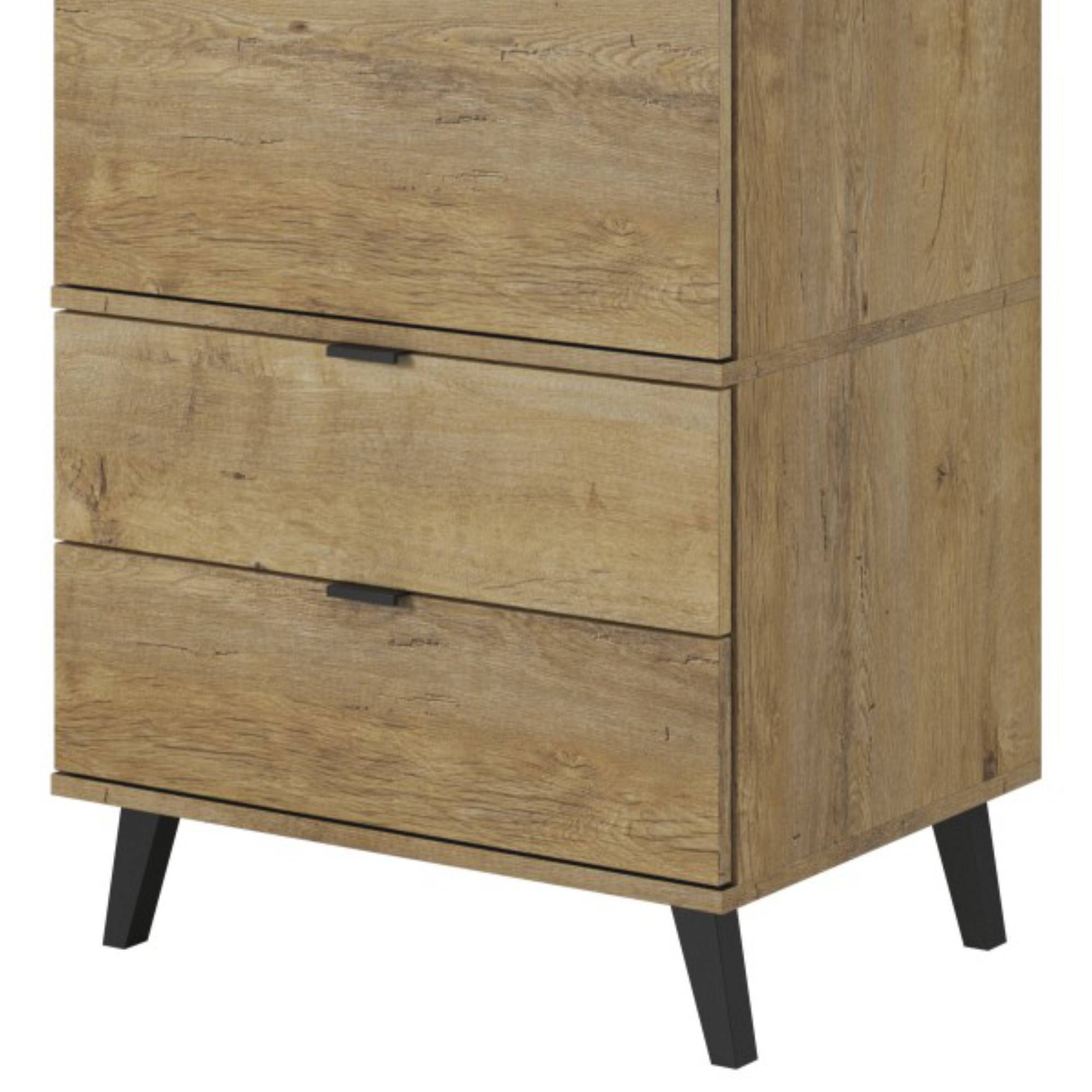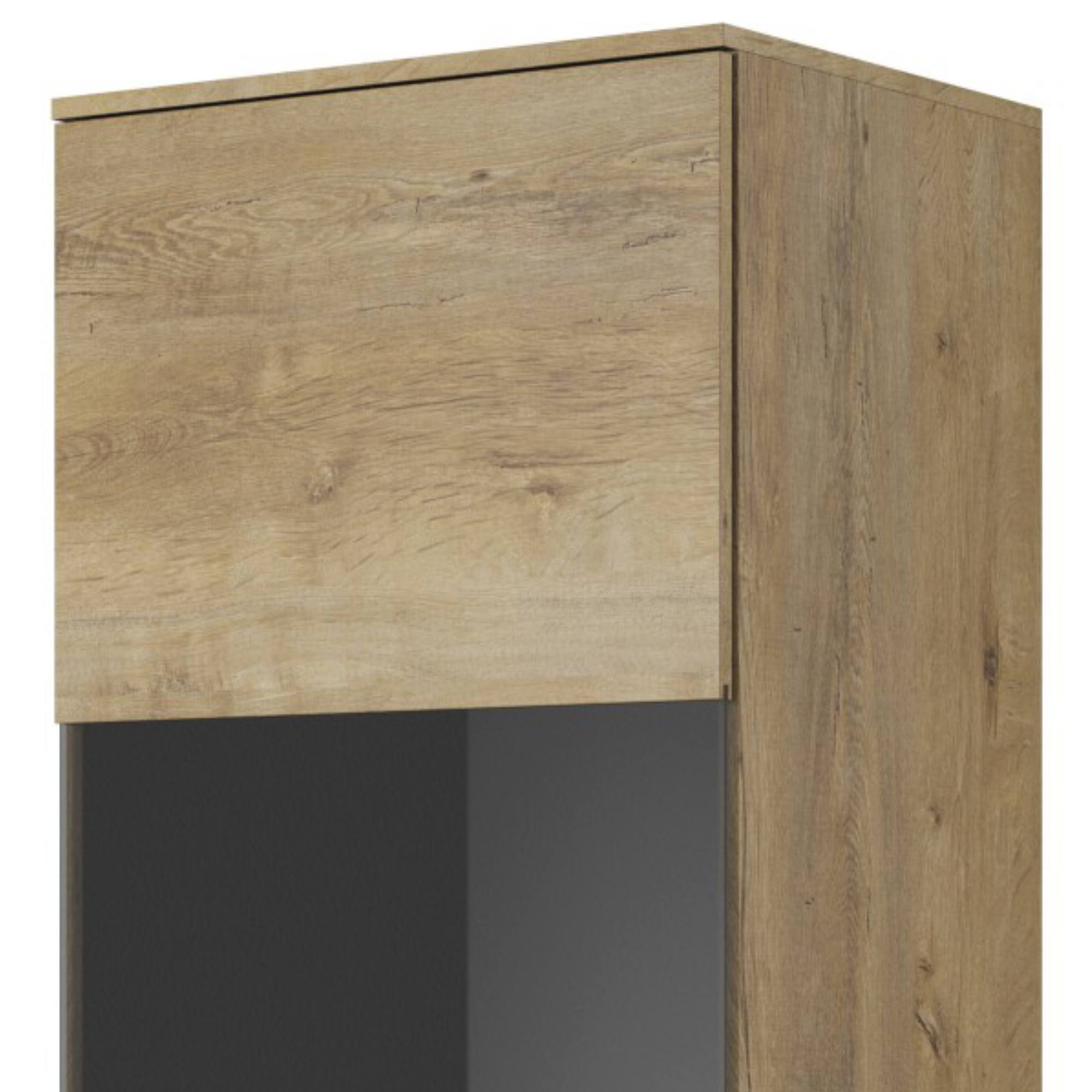 Vitrína NIST uchváti svojim výstredným dizajnom navrhnutým do moderného štýlu s minimalistickými prvkami. Korpus z dyhovaného dreveného materiálu vytvorí príjemnú, domácku atmosféru.