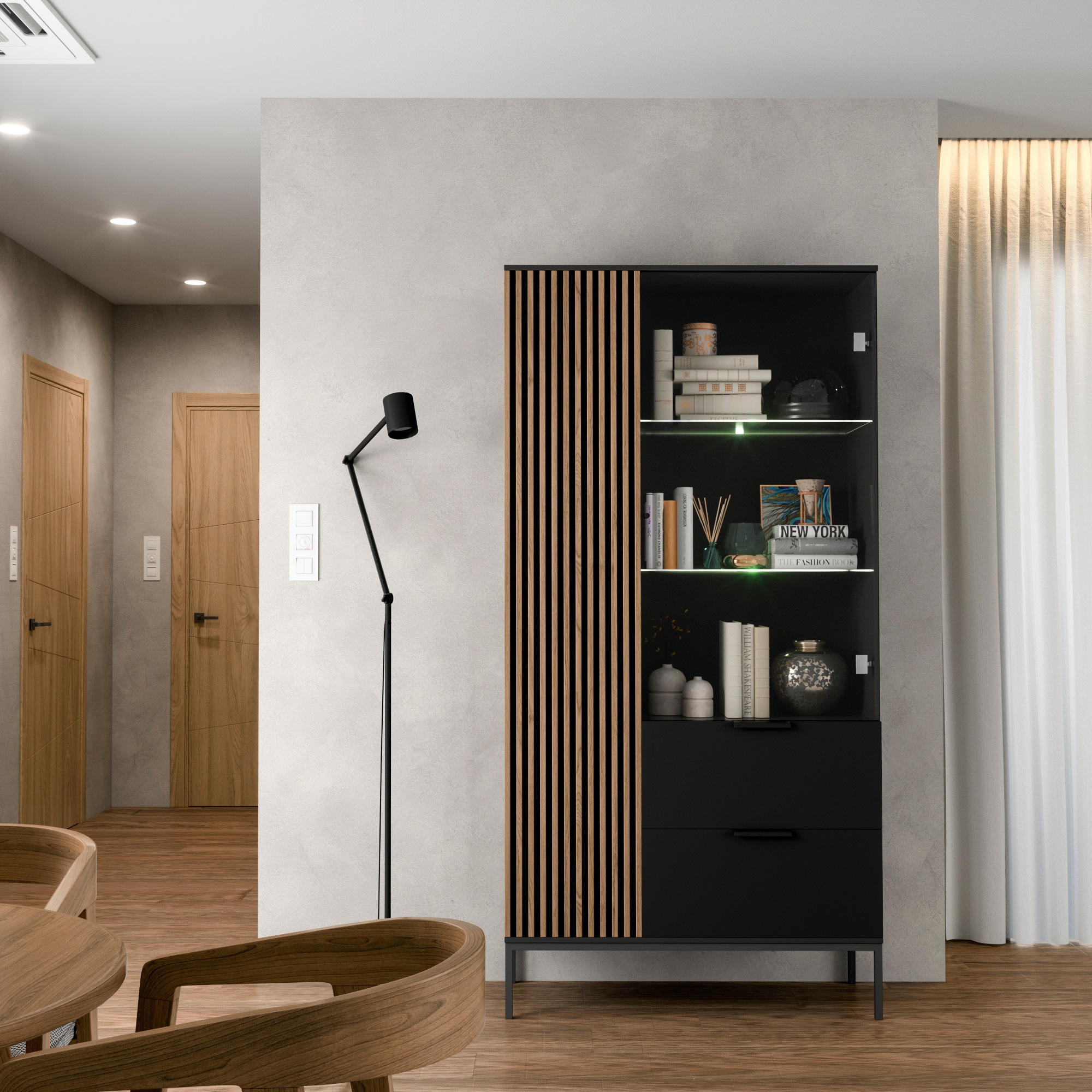 Vitrína ODETTE - dub artisan/čierna