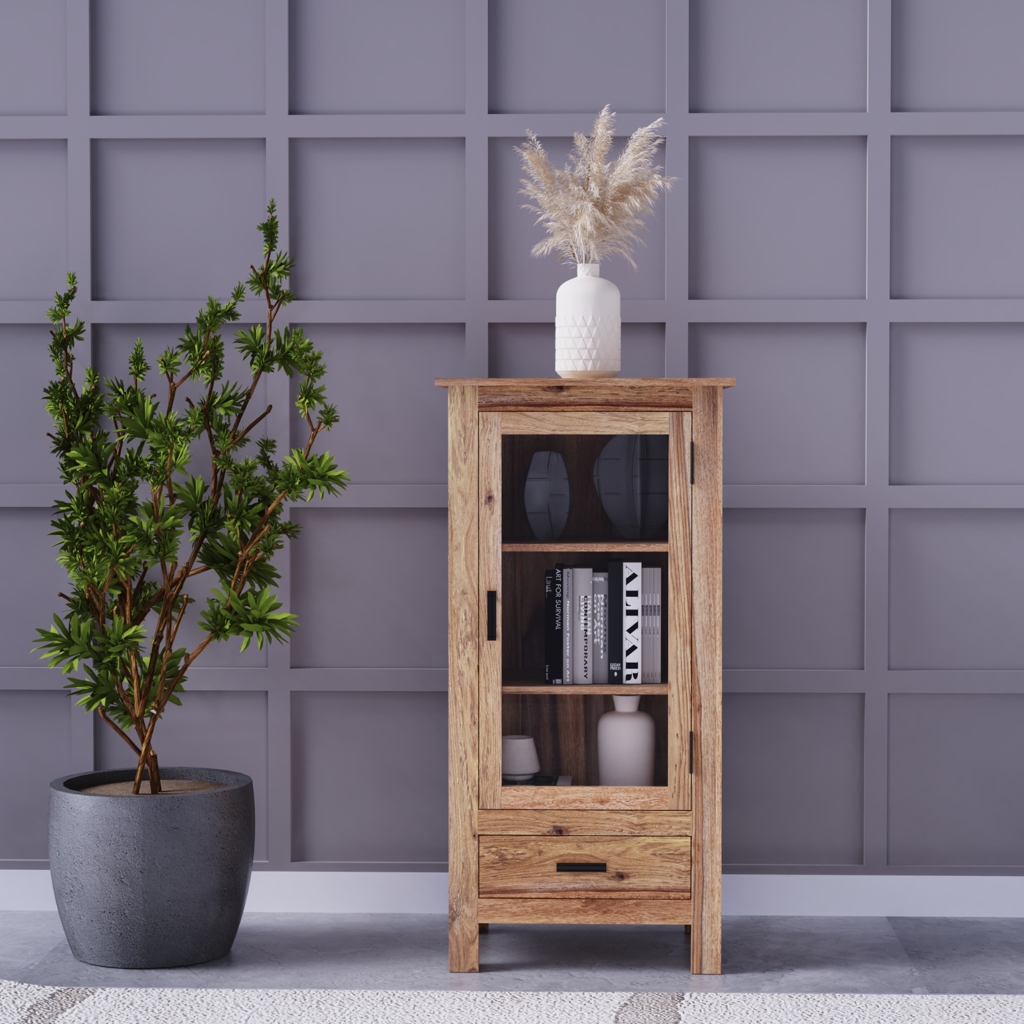 Vitrína RAMIL 60 III vnesie do vášho interiéru štýlový nádych rustikálneho dizajnu.