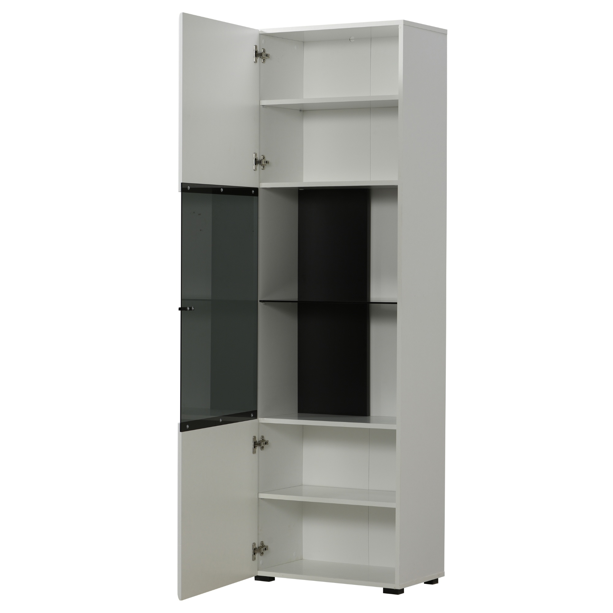Disponuje presklenými dvierkami s vnútornými policami, vďaka čomu ponúka dostatok odkladacieho a úložného priestoru.