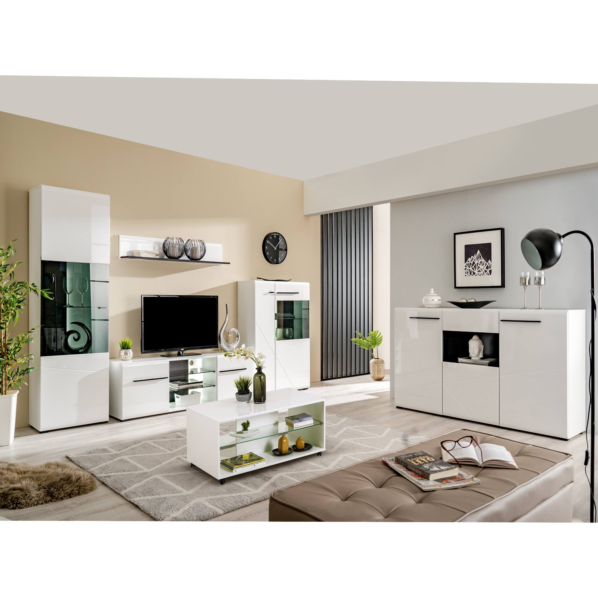 Vitrína TRENTINO I - biela/biela vysoký lesk