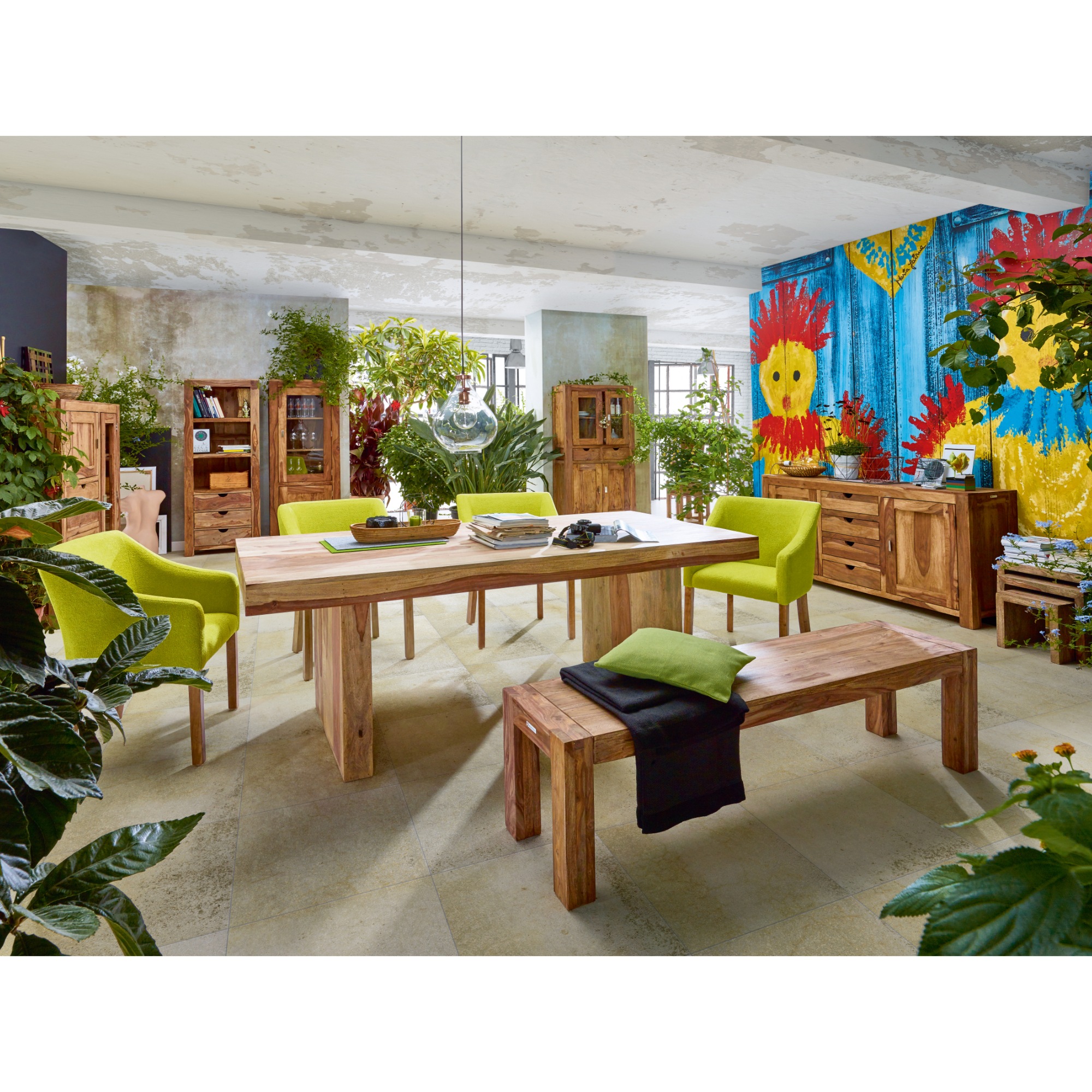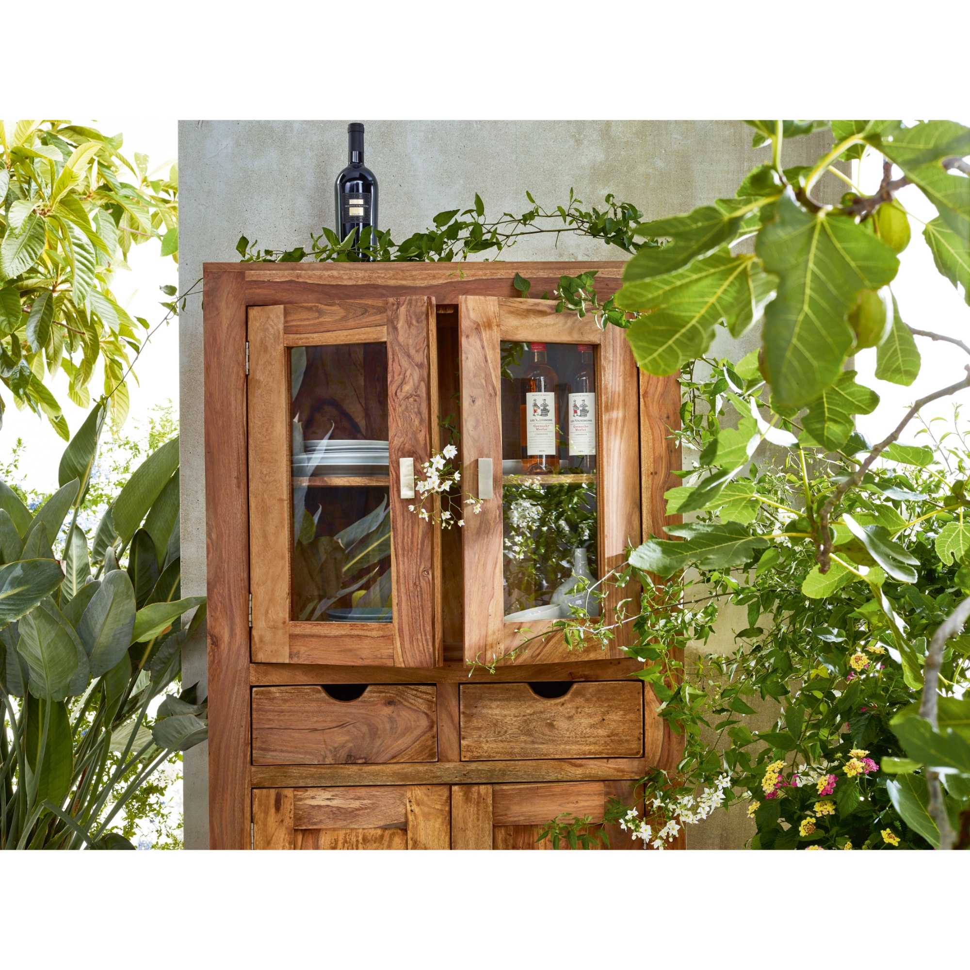 Objavte čaro exotických driev s vitrínou YOGA. Vyrobená je z palisandrového masívu, ktorý pochádza z kontrolovaných indických plantáží. Jeho ručné spracovanie zaisťuje, že každý kus nábytku bude absolútnym originálom. Vďaka krásnej prirodzenej kresbe dreva nie je treba žiadnych ozdobných prvkov, dizajn je čistý a jednoduchý. Dostatok úložného priestoru zaisťuje skrinka a dve zásuvky v spodnej časti a presklená skrinka v hornej časti. Palisandrové drevo, čiže Sheeshamové drevo je veľmi obľúbeným materiálom na výrobu nábytku vďaka svojej odolnosti, tvrdosti a tiež dlhej životnosti.