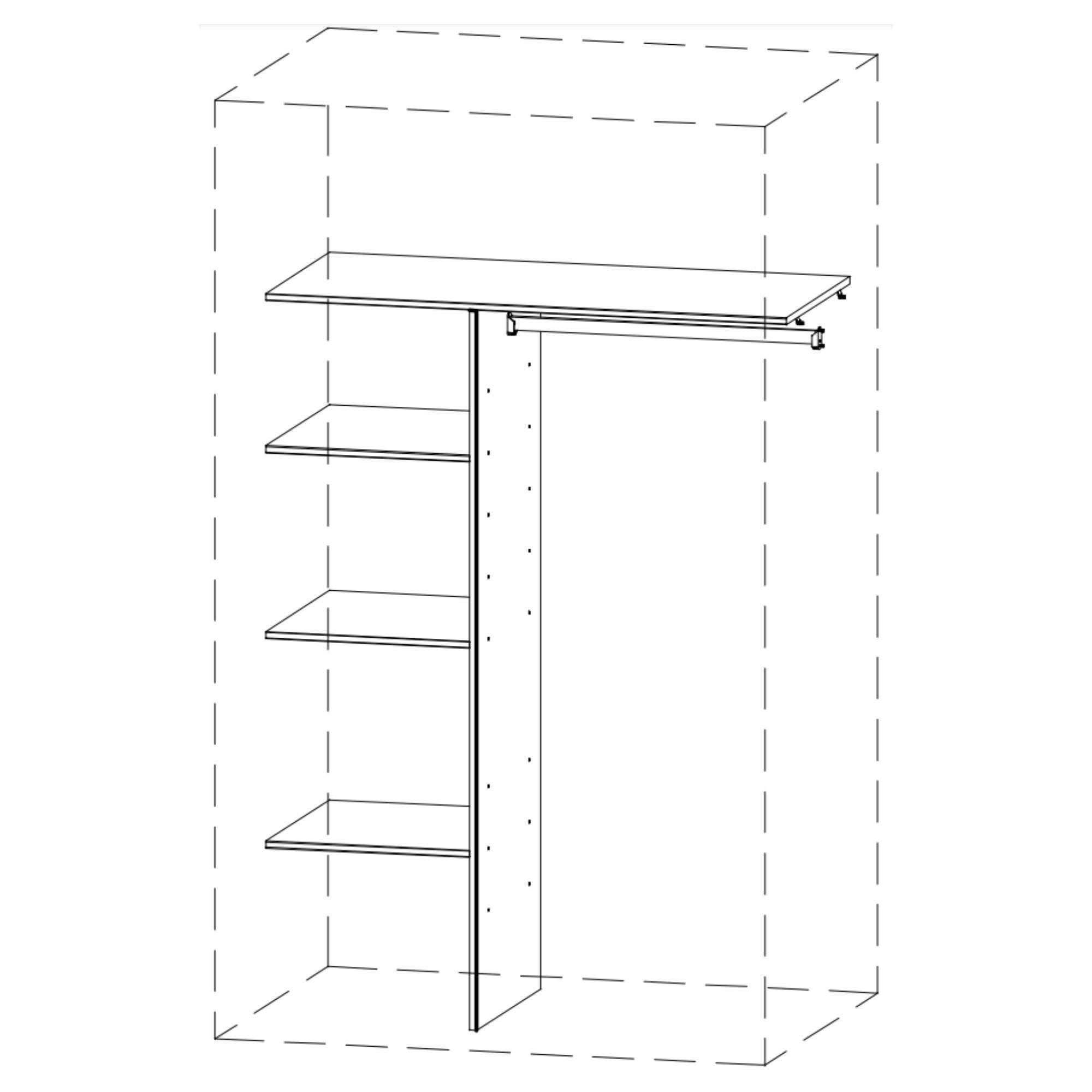 Praktický vnútorný deliaci element. Optimálne využitie už existujúceho priestoru. Jednoduché riešenie pre poriadok a prehľadnosť. 4 police, stredová doska, šatníková tyč. Vrátane spojovacieho materiálu.