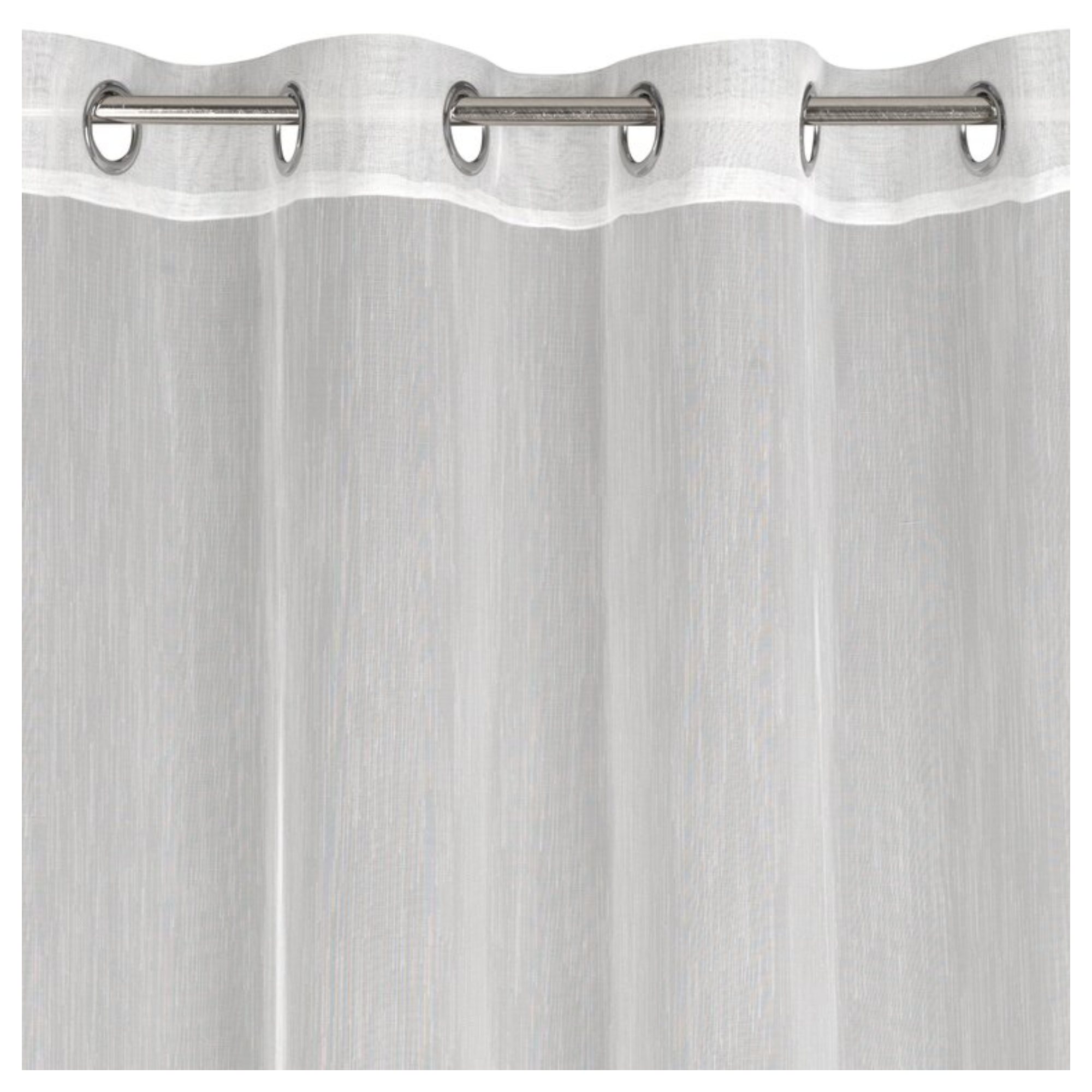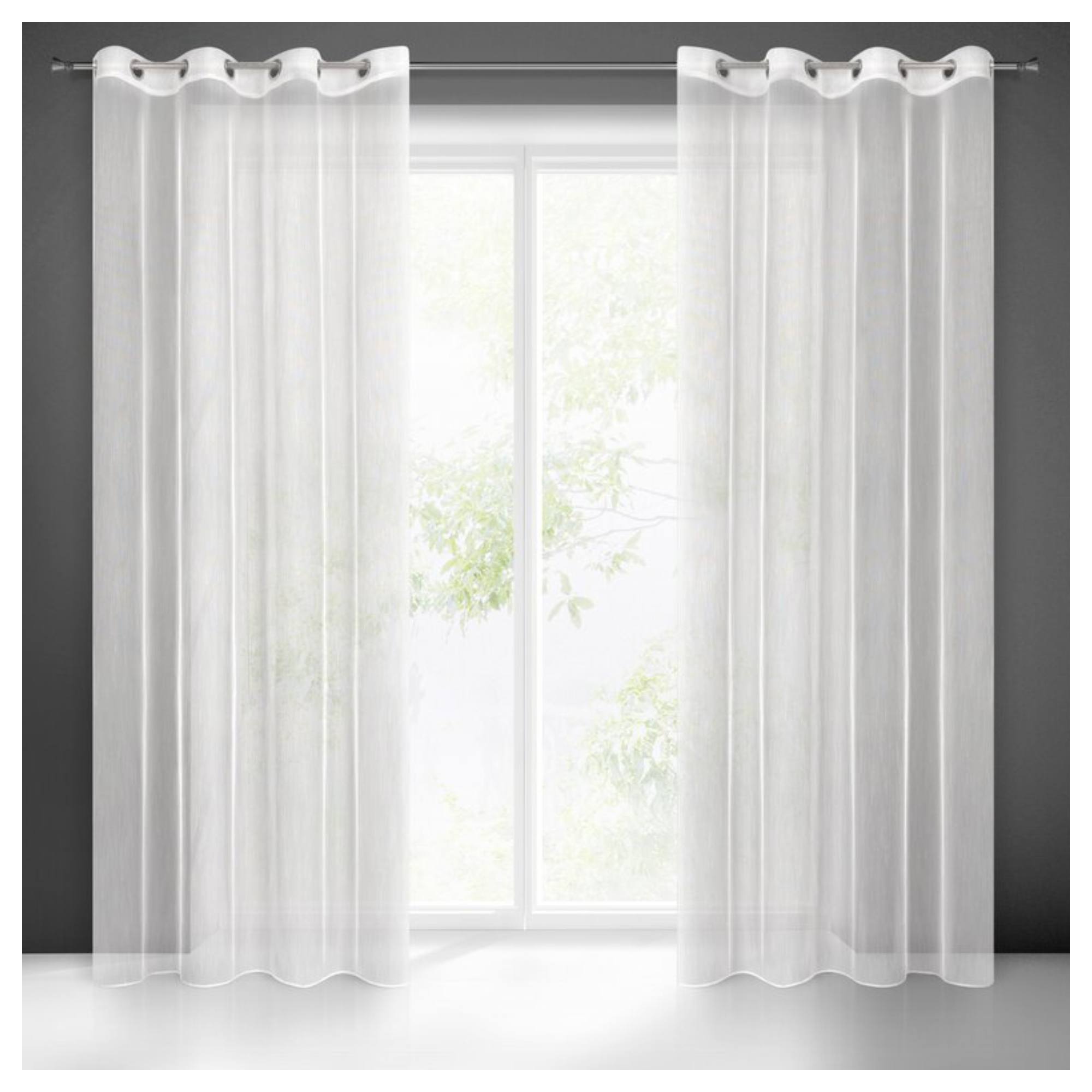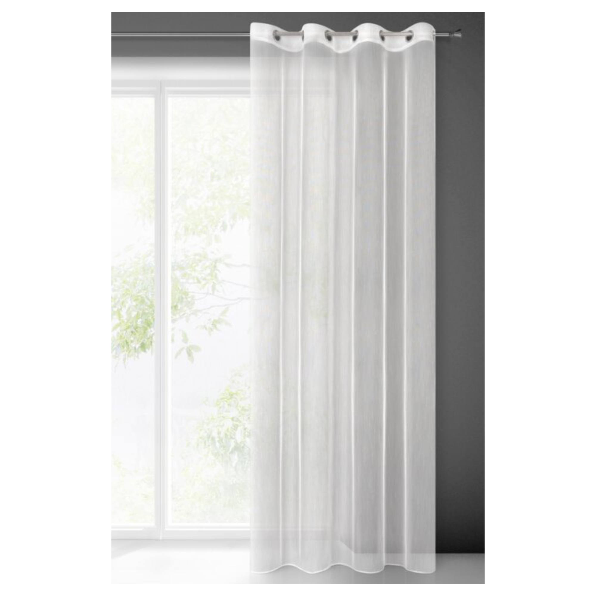Je vyrobený z ľahkej matnej látky v bielej farbe, ktorá skrášli každú miestnosť. Vďaka jednofarebnému jednoduchému vyhotoveniu sa bude vynímať v rôznych interiéroch. Jemná štruktúra látky poskytuje ochranu pred slnečným žiarením a zároveň nezatemňuje priestor. Zloženie zo 100 % polyesteru vám umožní ľahkú údržbu. Je vybavený praktickým a úhľadným zavesením na kovové očká s priemerom 4 cm.