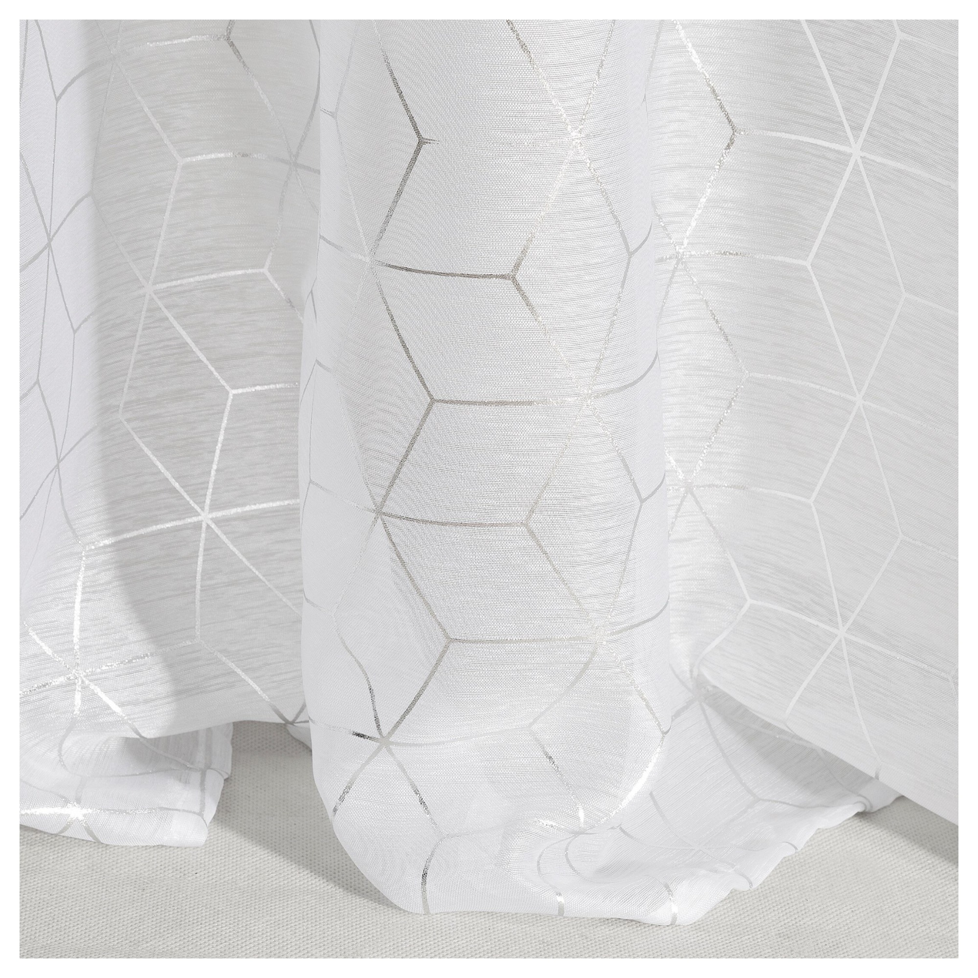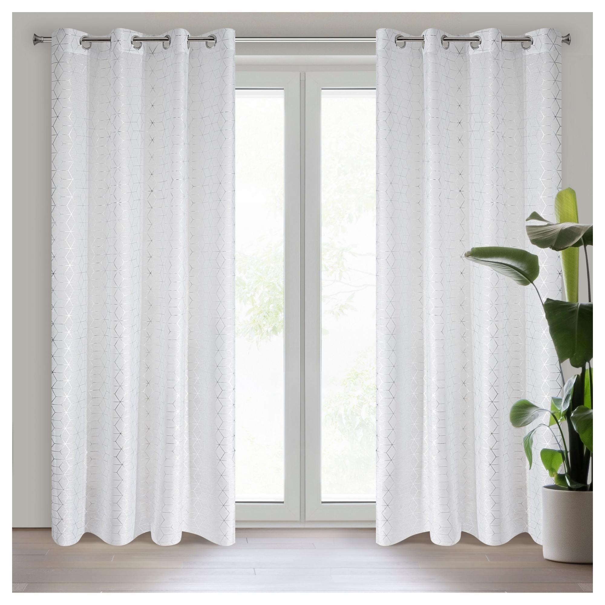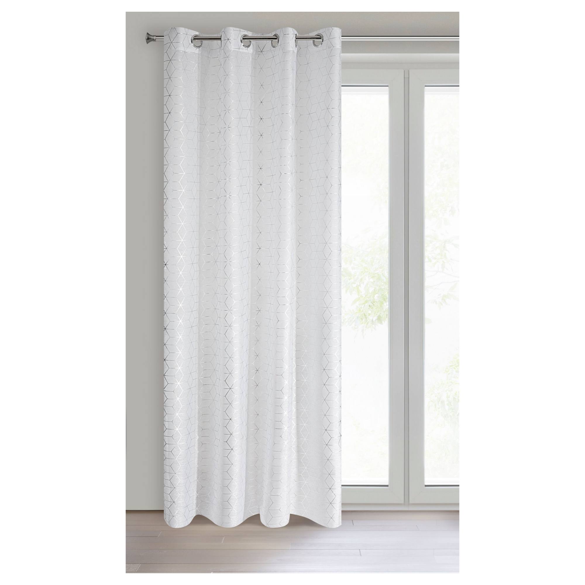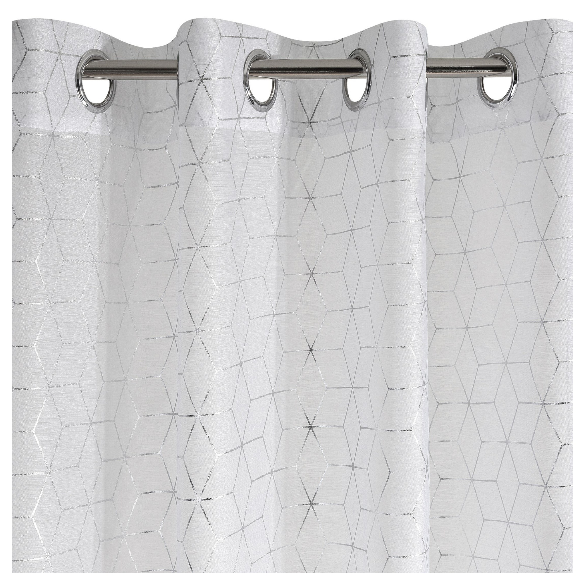 Záves s metalickou potlačou je ideálnou voľbou do moderných interiérov, ktorým dodá potrebný šmrnc. Voálový typ závesu umožňuje čiastočné prenikanie prirodzeného svetla a slnečných lúčov, ale stále zaručí potrebné súkromie. Na ľahké pripevnenie na garnižu slúžia praktické kovové očká v hornej časti.